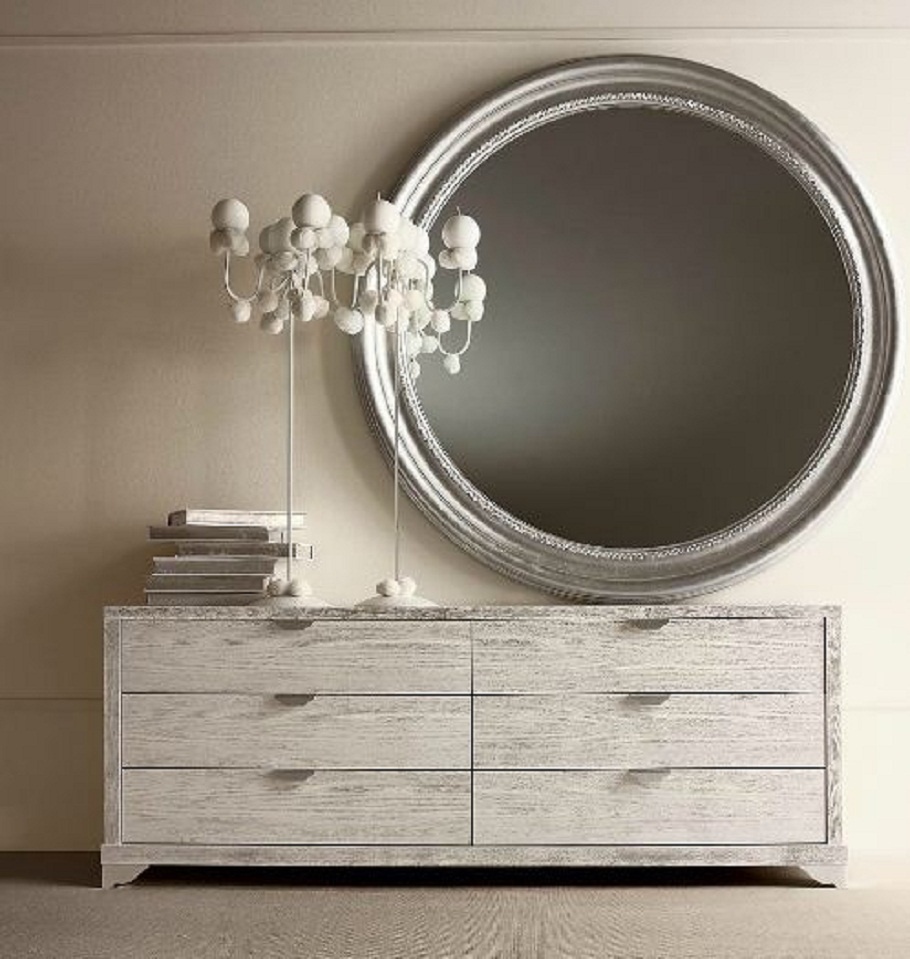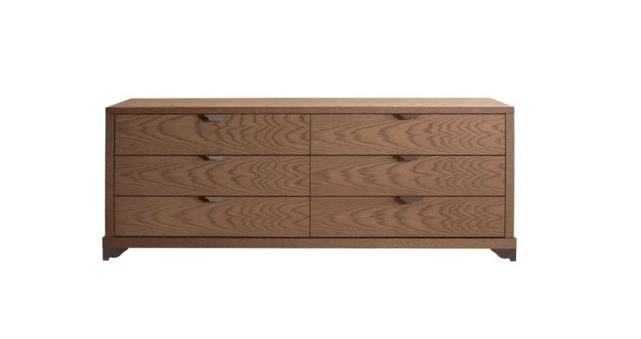 Wide chest Bilbao produced by the Italian factory EGO. Frame and drawers made of wood. Legs and metal fittings. The model with six drawers. The product is brown or gray, replicates natural wood pattern, made in a modern style.