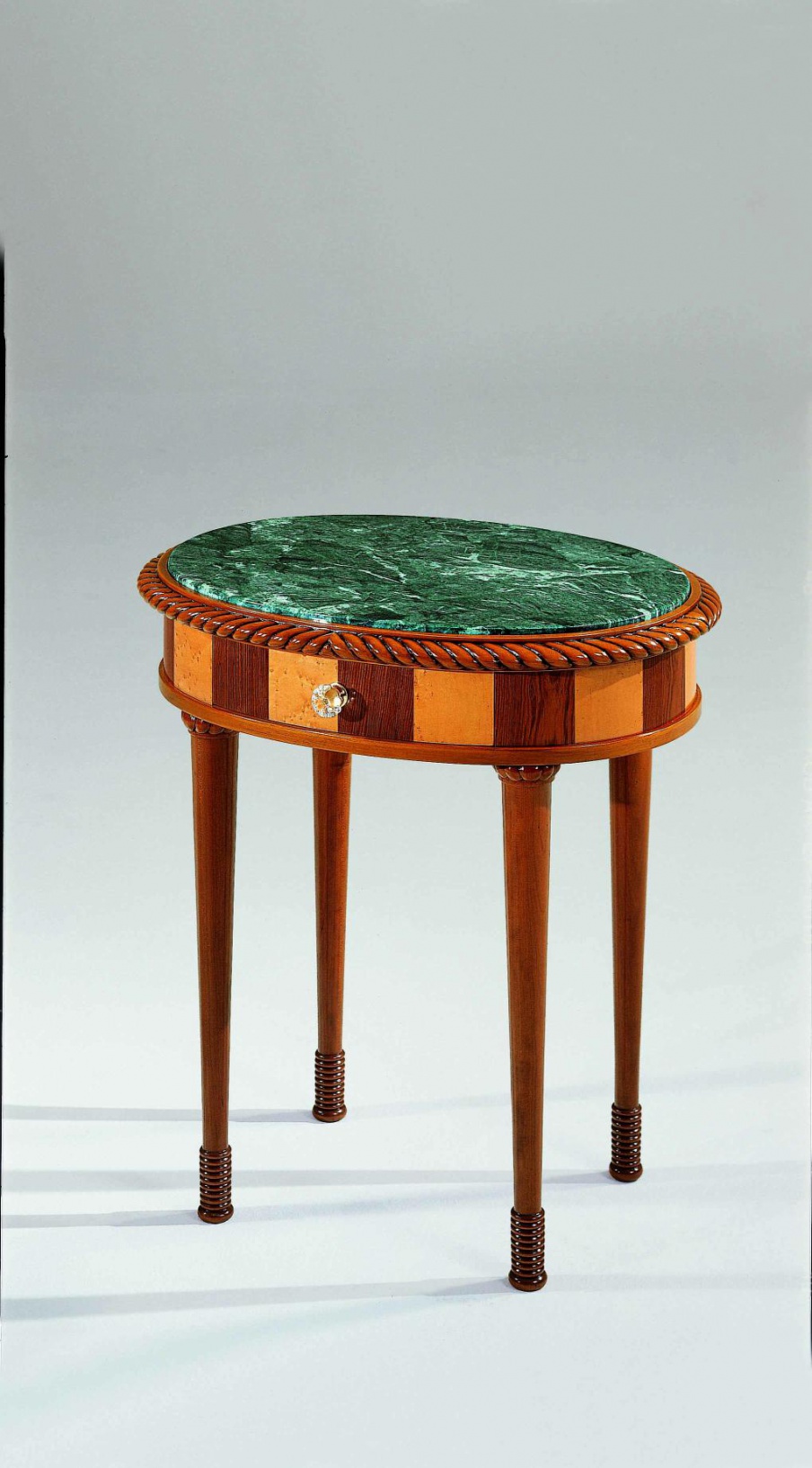 Riedizioni bedside table from Italian manufacturer Colombo Stile. The frame is natural wood. Countertop - marble. The finishing - varnish. The style is eclectic. Colours in stock.