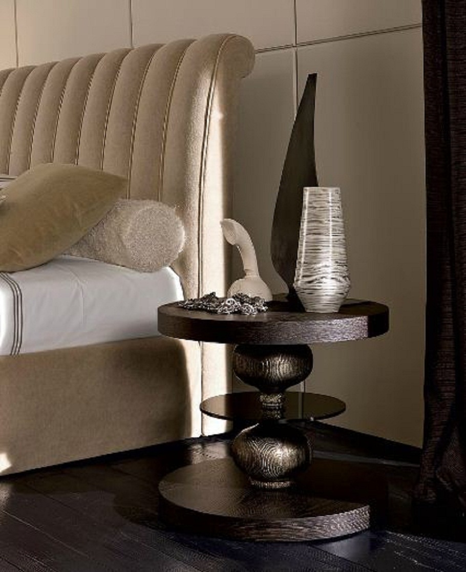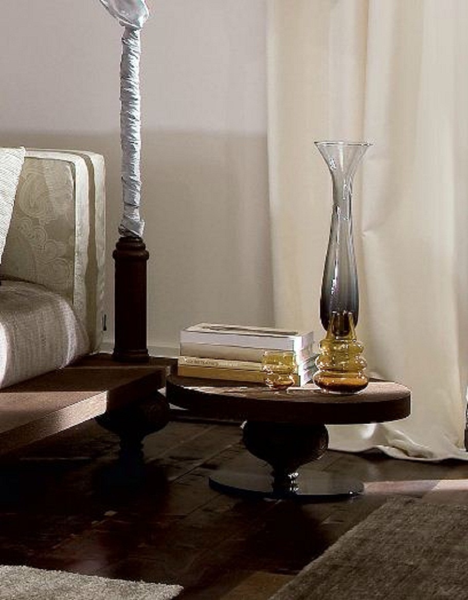 Bedside table Marrakech produced by the Italian factory EGO. The frame and legs are made of wood. The Central decorative element is made of metal. A choice of models of different heights. Product color from manufacturer's catalogue. The table is designed in modern style.