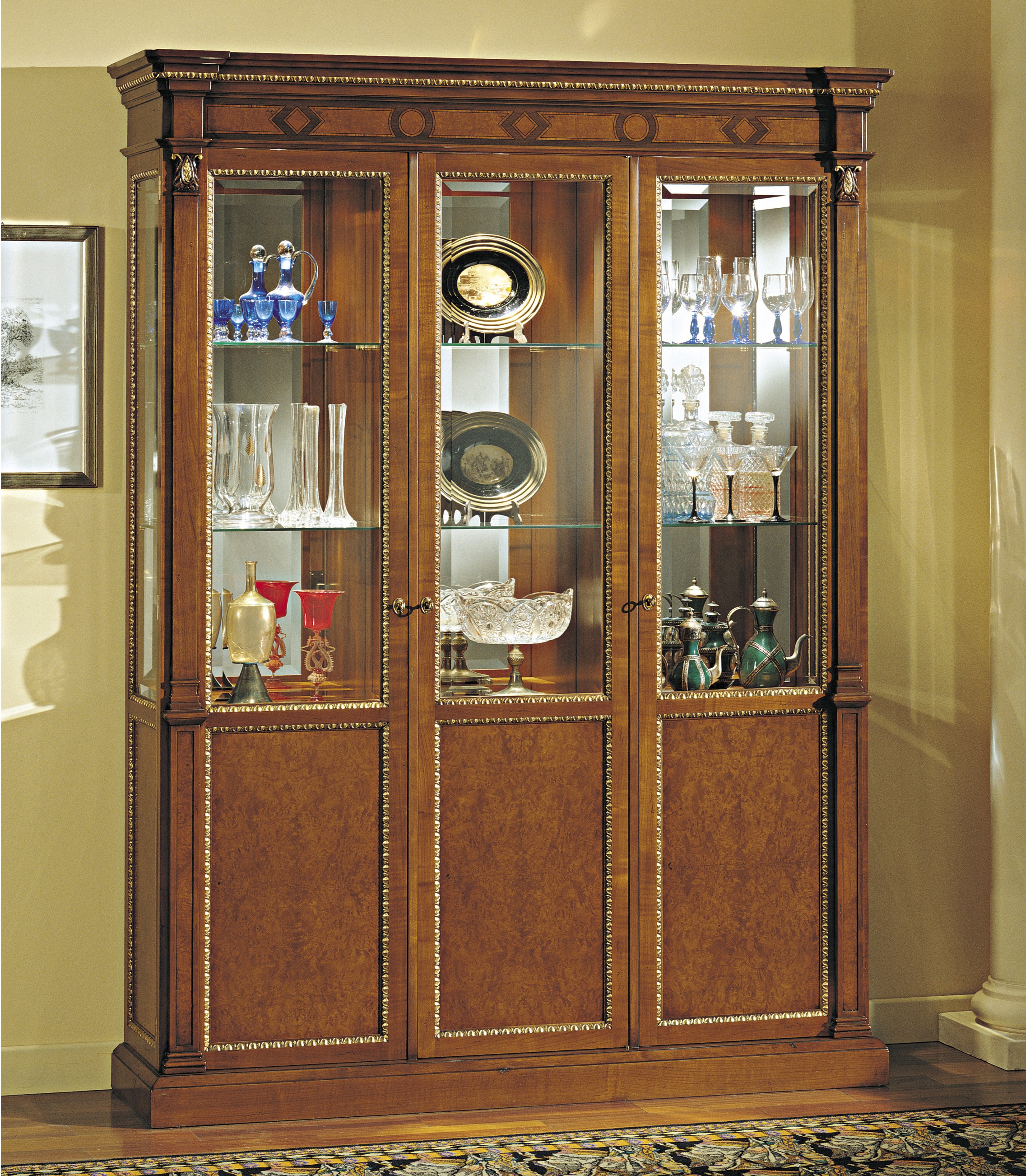 Showcase from Italian manufacturer Francesco Molon, a collection of New Empire. The case is made of natural wood. Shelves and doors - glass. Decorative elements in gold plated finish. Model in the classic style, colors in stock.
