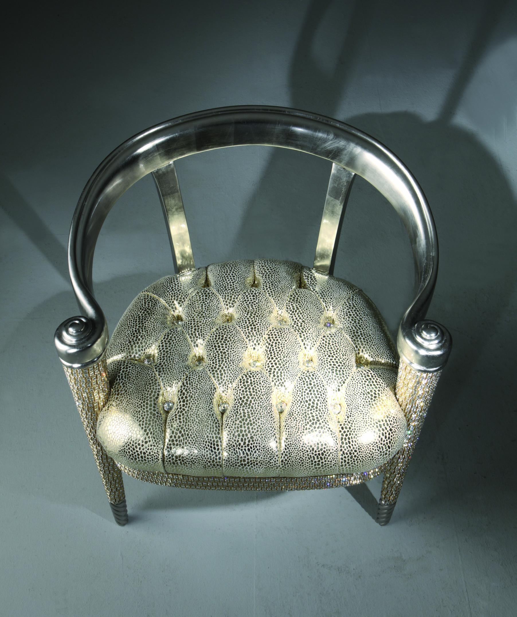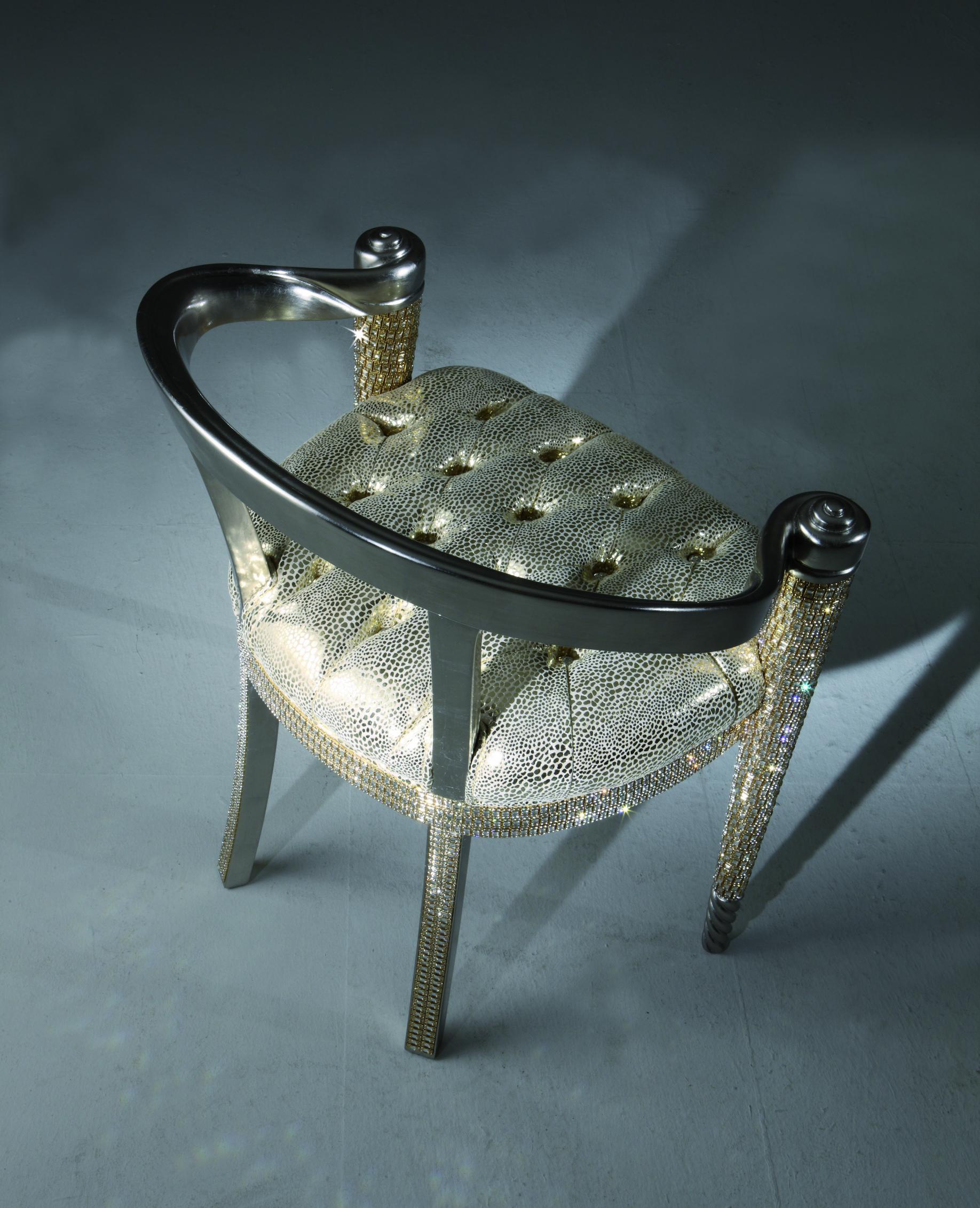Chair with armrests made with Swarovski from Italian manufacturer Colombo Stile. The frame is natural wood. Decorative elements and Swarovski crystals. Upholstery - textiles. The model is made in modern style. Colours in stock.