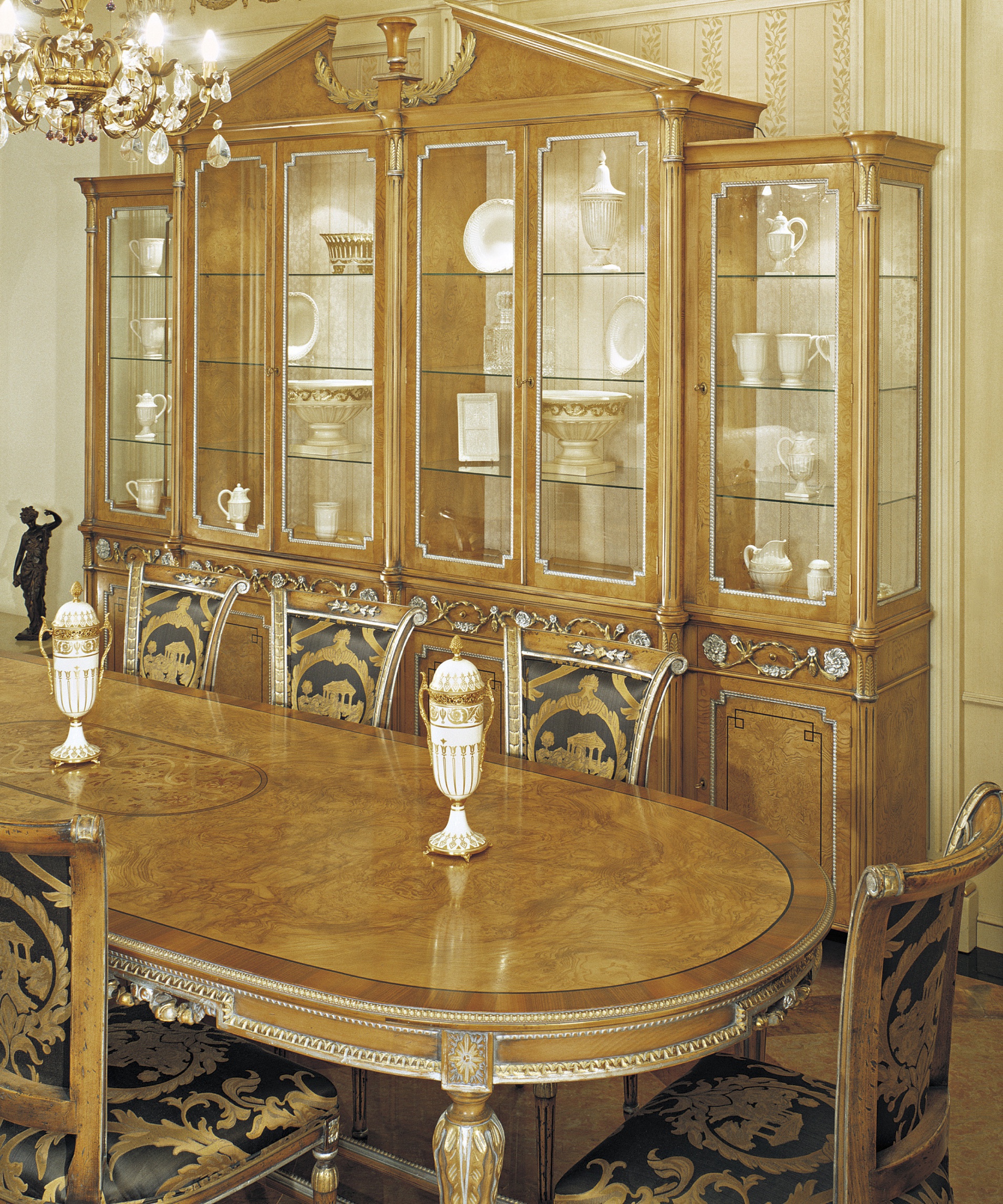 Oval dining table from the Italian manufacturer Francesco Molon, a collection of New Empire. The model is made in classic style of natural wood, decorative elements - gilding. Colours in stock.