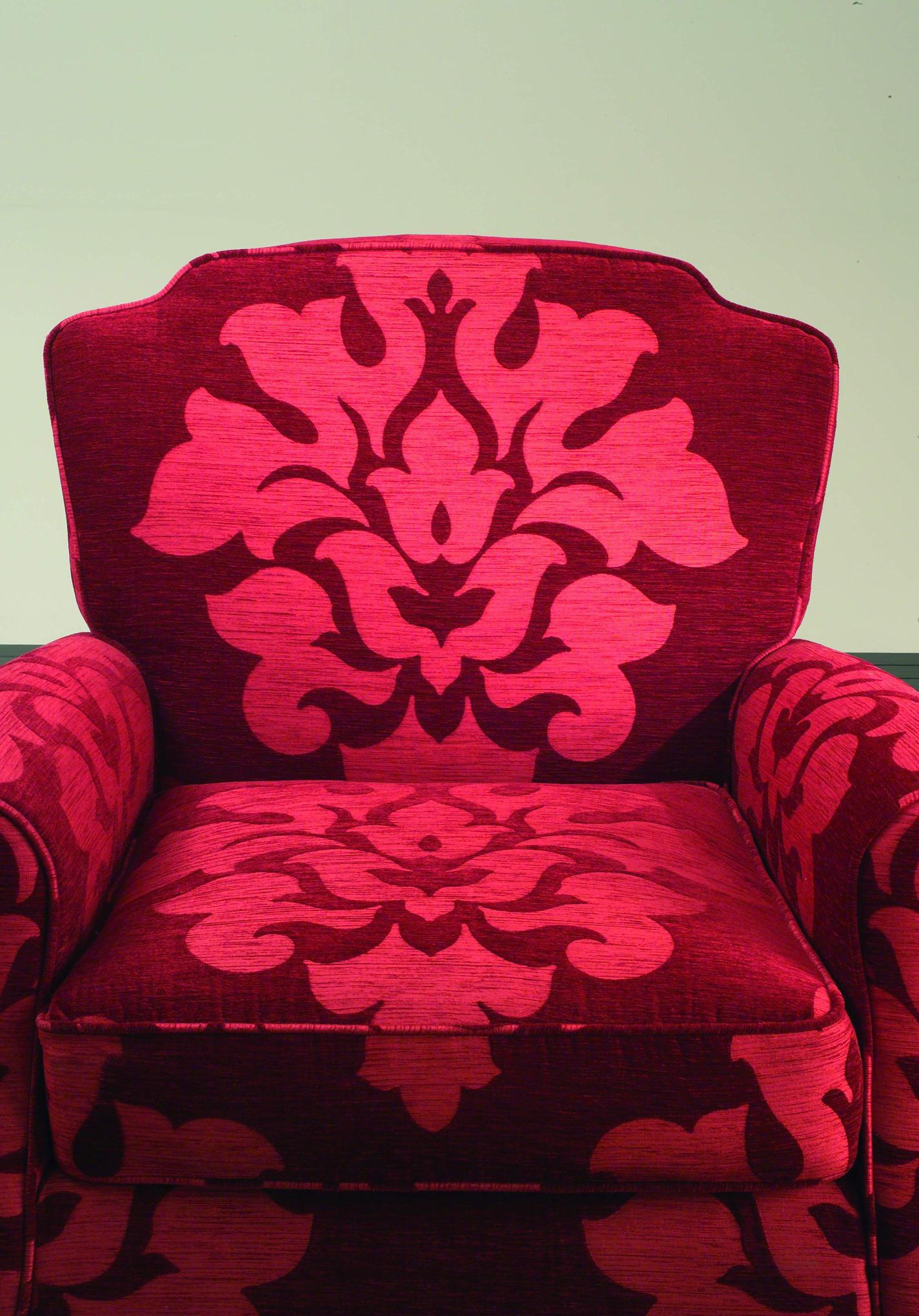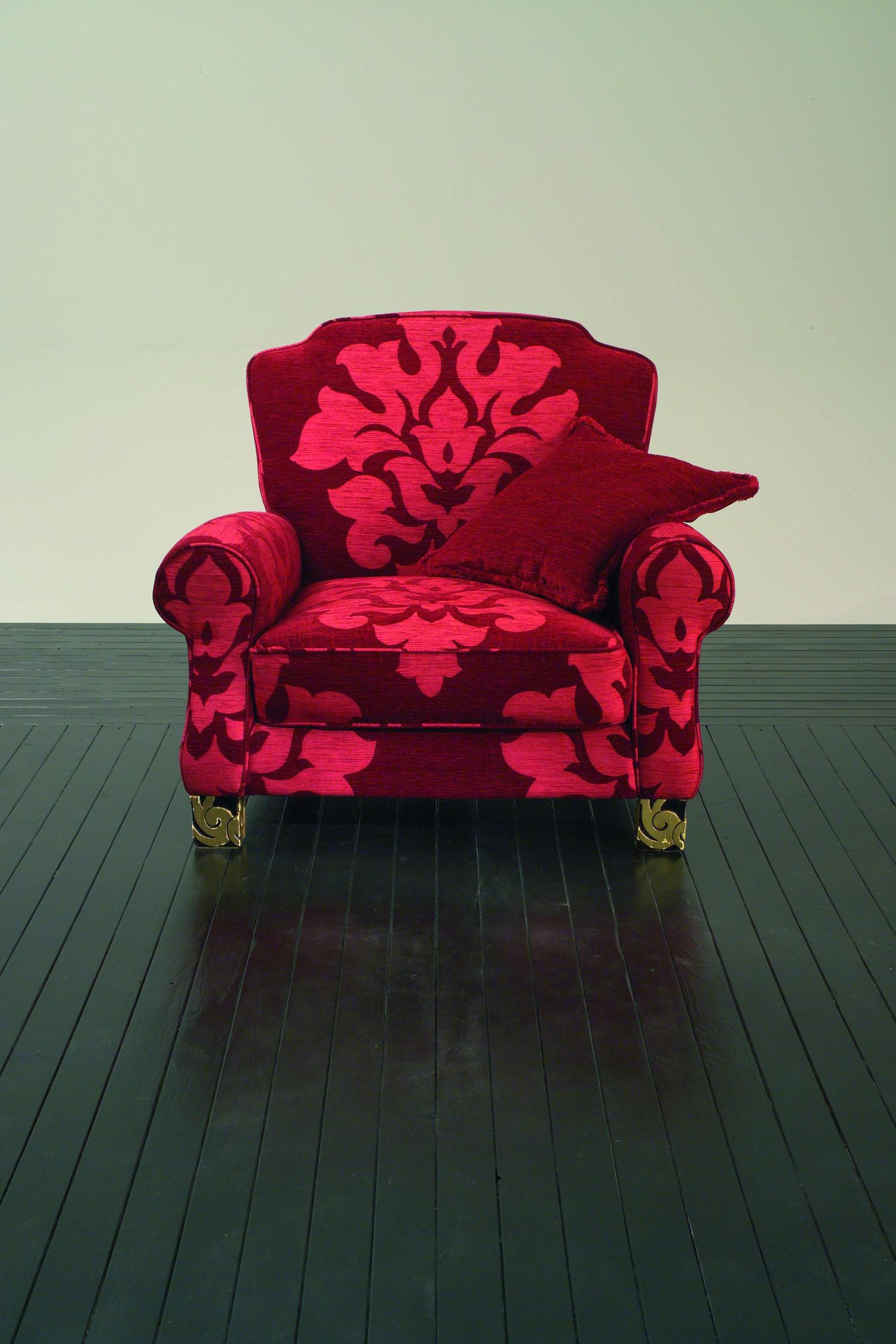 Tarsie chair from Italian manufacturer Colombo Stile. Design wooden katana. With one pad. Legs made of carved wood, gold leaf, patina. On photos in fabric "Damasco". The model is made in modern style. Colours in stock.