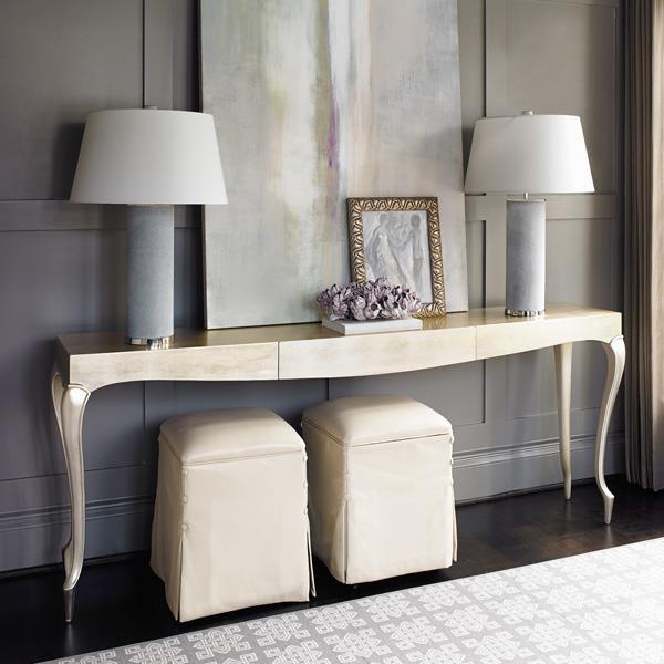 Console Gold-y on cast metal legs from an American manufacturer Caracole. Frame of solid wood on cast legs in the form of Cabriole. Finish - plated with a lacquer coating from the company portfolio. Model with long pull-out drawer is perfectly fit into the interior, narrow hallway, behind the sofa in the living room or bedroom. The modern design.