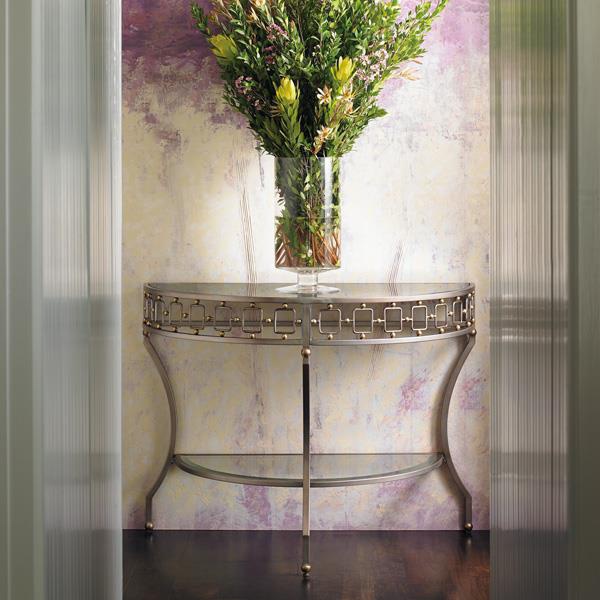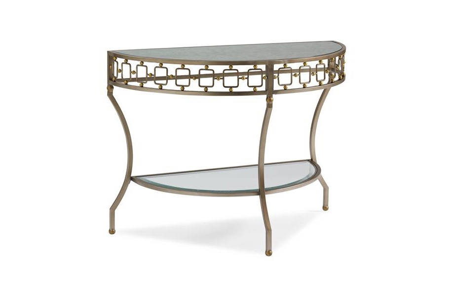 Console My Better Half with a frame of wrought iron from an American manufacturer Caracole. Model of the semicircular form of manual work. Finish - bronze with gilding. Worktop - glass. The model is made in classic style. Colours in stock.