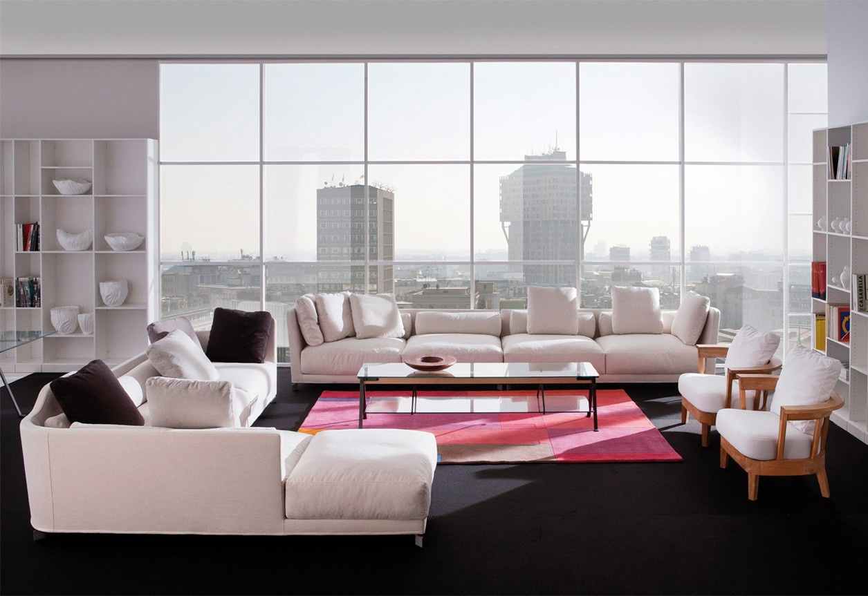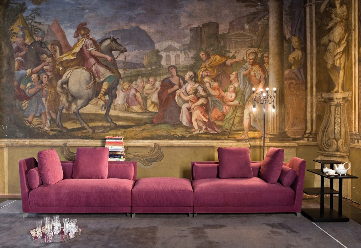 Bedda sofa from Italian manufacturer Driade. Factory offers double, triple and sectional model kit. The frame is made from wood. The legs are made from grey painted steel. For upholstery, removable covers made of leather or textile fabric from the company portfolio. The filler goose feather and polyurethane foam of different densities. Complement the design of decorative cushions. A modern solution for the interior of your living room.