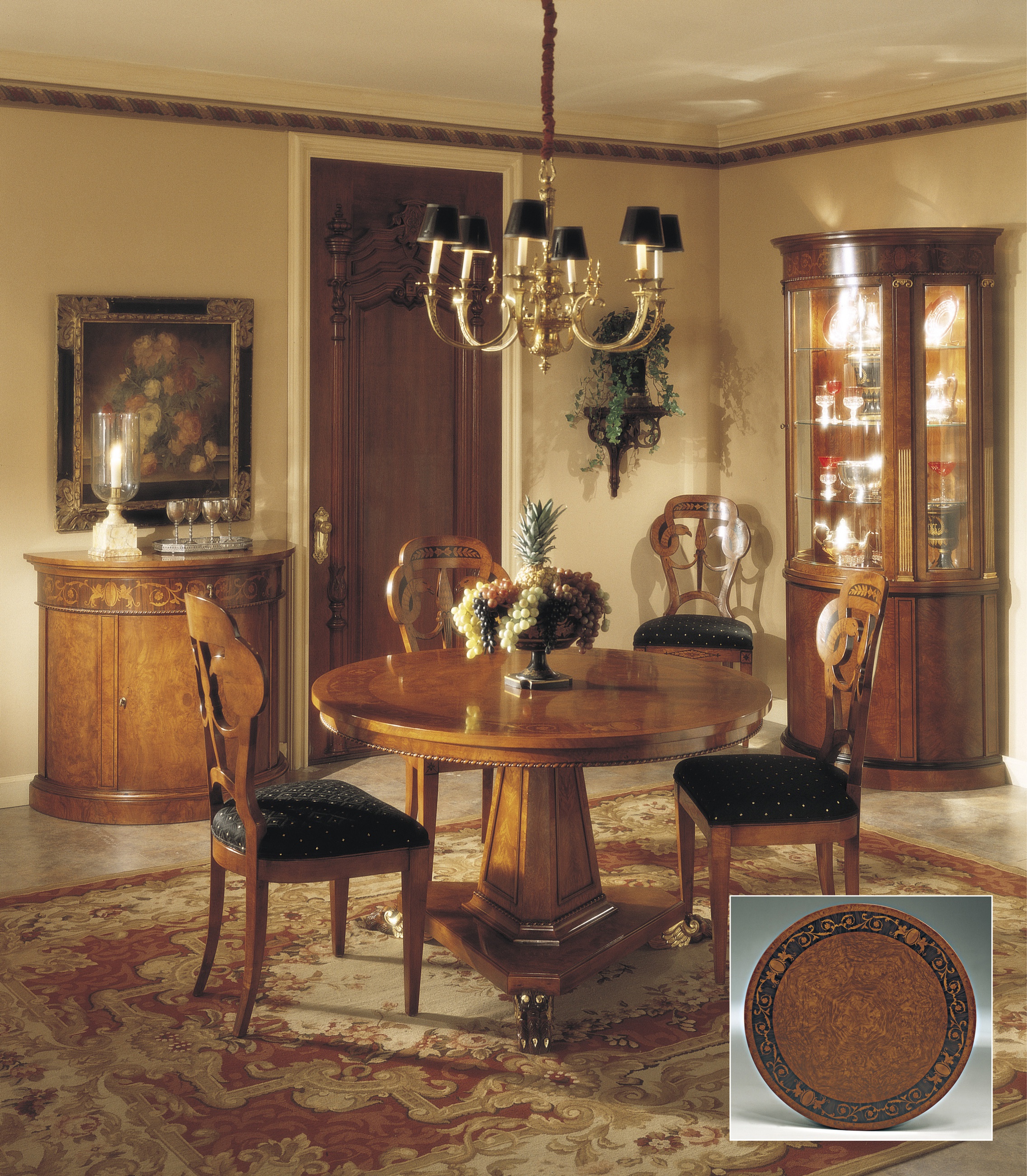Dining table from the Italian manufacturer Francesco Molon, a collection of New Empire. Model in classic style made of natural wood, hand carved. Decorative elements in gold plated finish. The choice of color in stock.