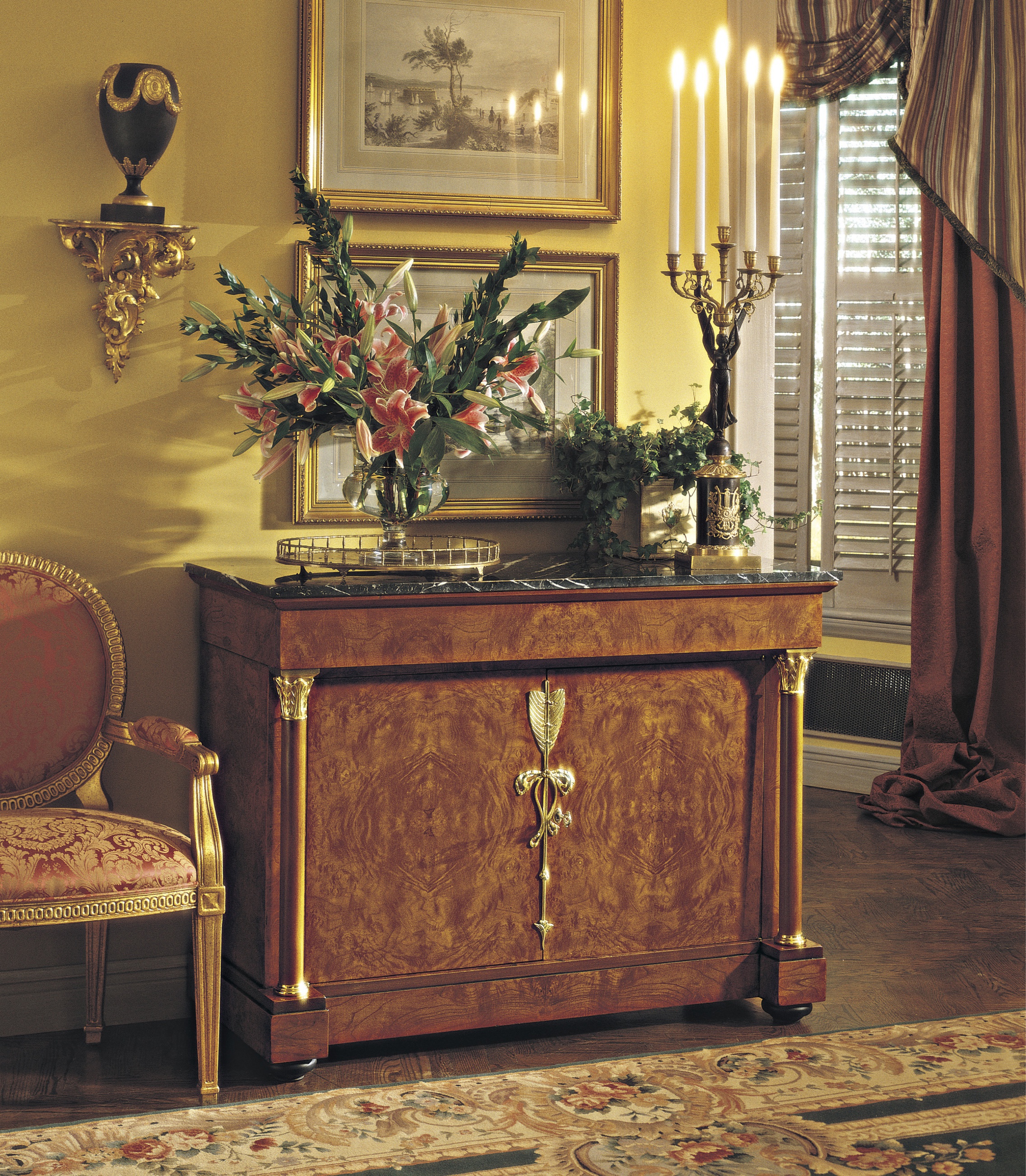 Stand from Italian manufacturer Francesco Molon, a collection of New Empire. The model in the Empire style made of natural wood. Marble. Decorative elements in gold plated finish. Colours in stock.
