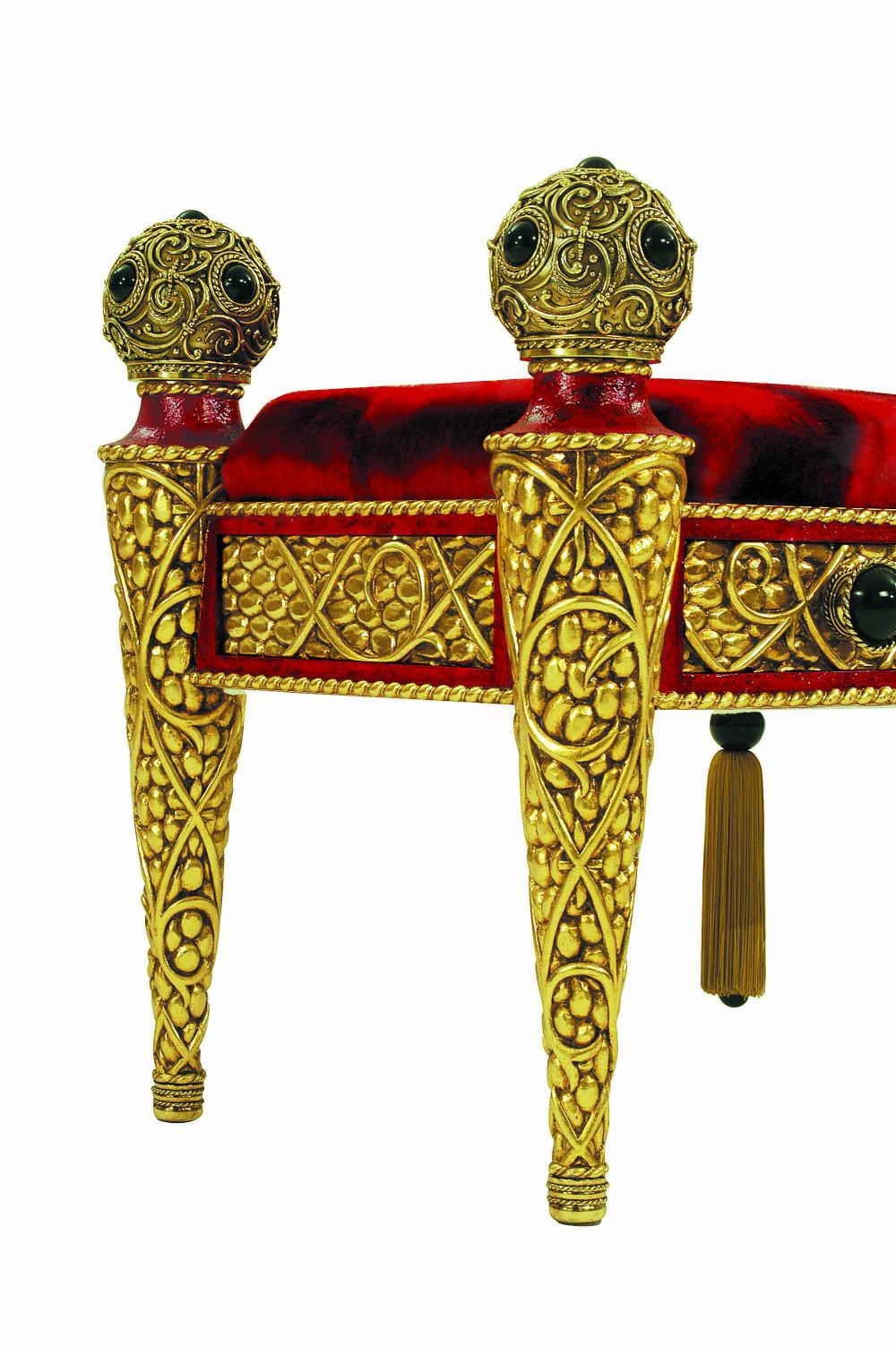 The Rouge et or bench from Italian manufacturer Colombo Stile. The frame is natural wood. Upholstery - textiles. Filler foam. Finish - gold leaf. Bronze decorative elements, synthetic hard stones. The model is made in modern style. Colours in stock.