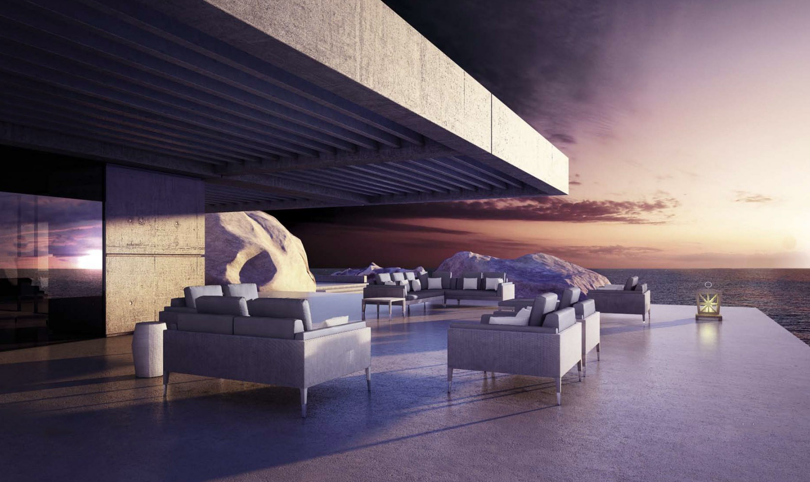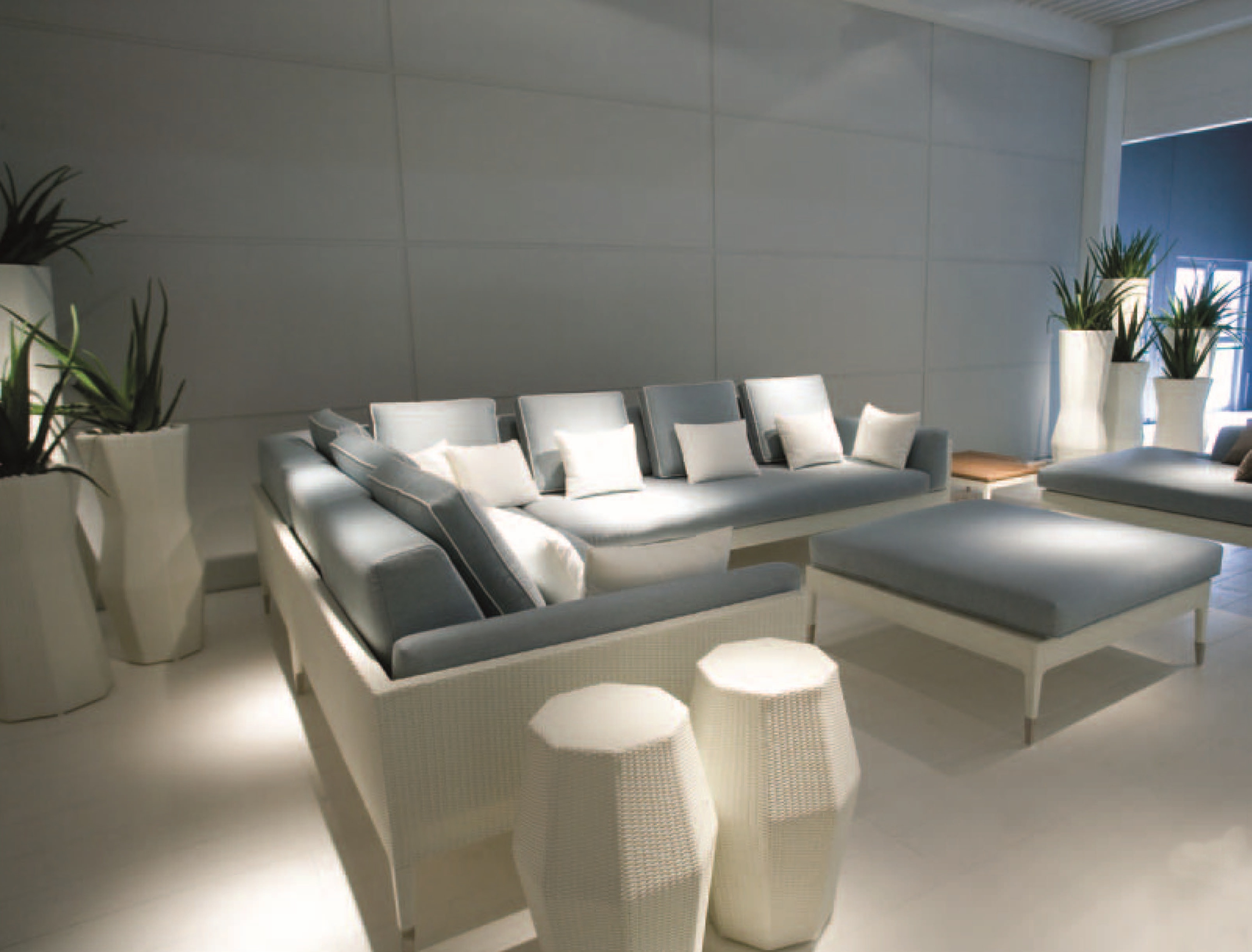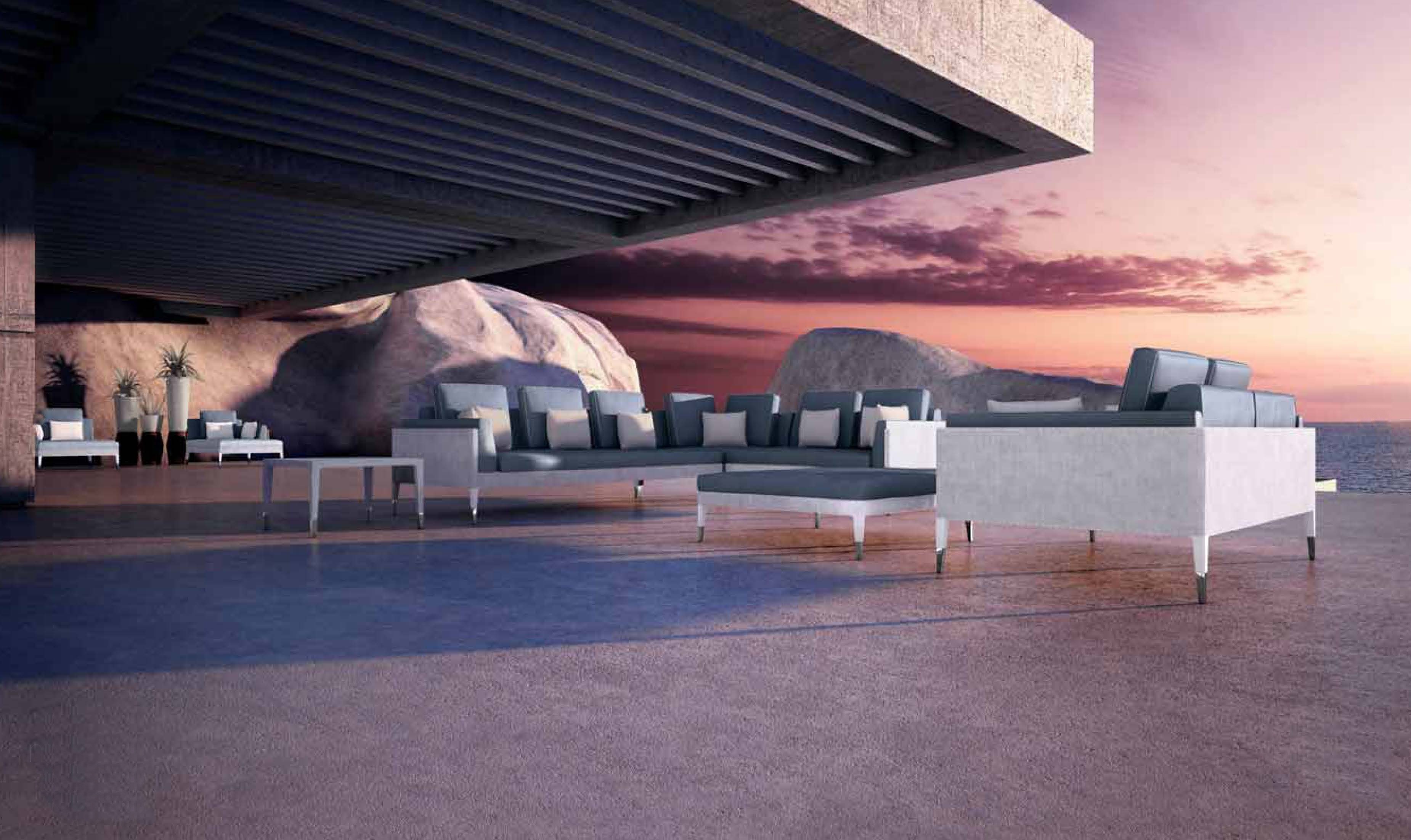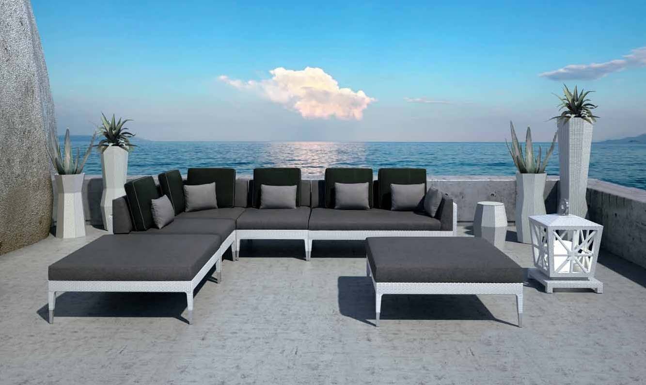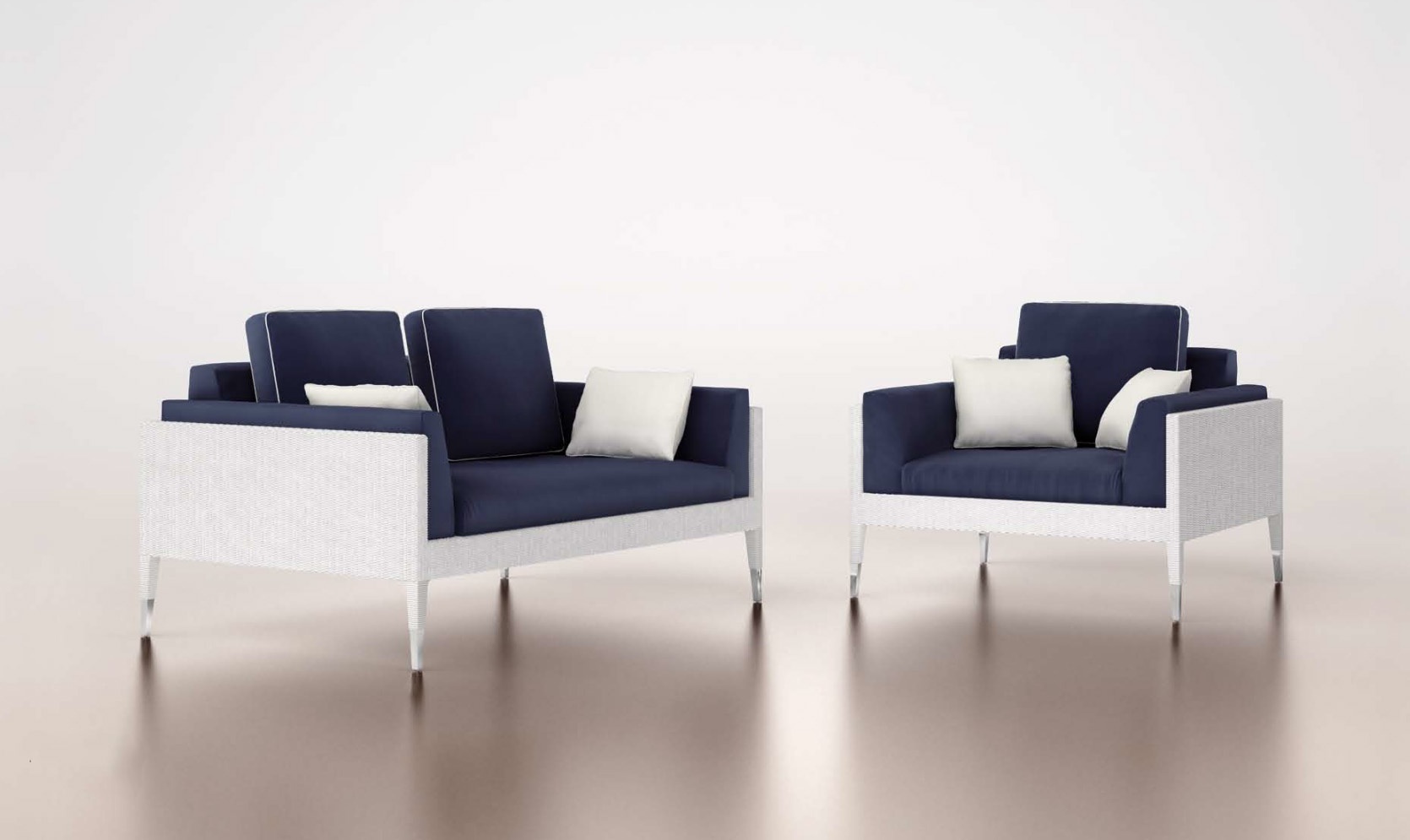 Sofa Costa Rey Maratea from the Italian manufacturer Smania.Sofa upholstery presents in the textile and leather version. The trim is made of PVC. The color of this model of sofa is white with blue.