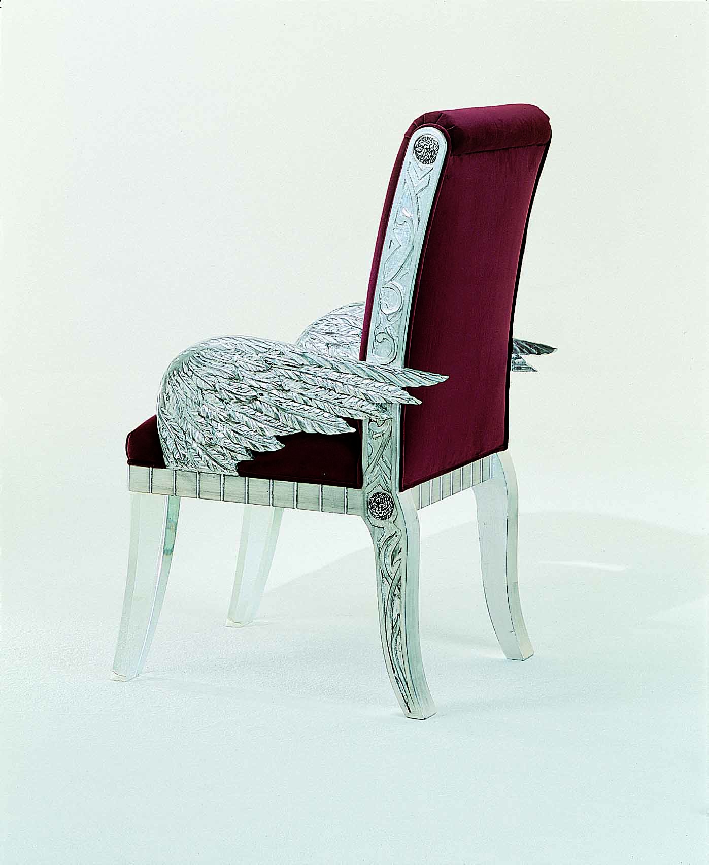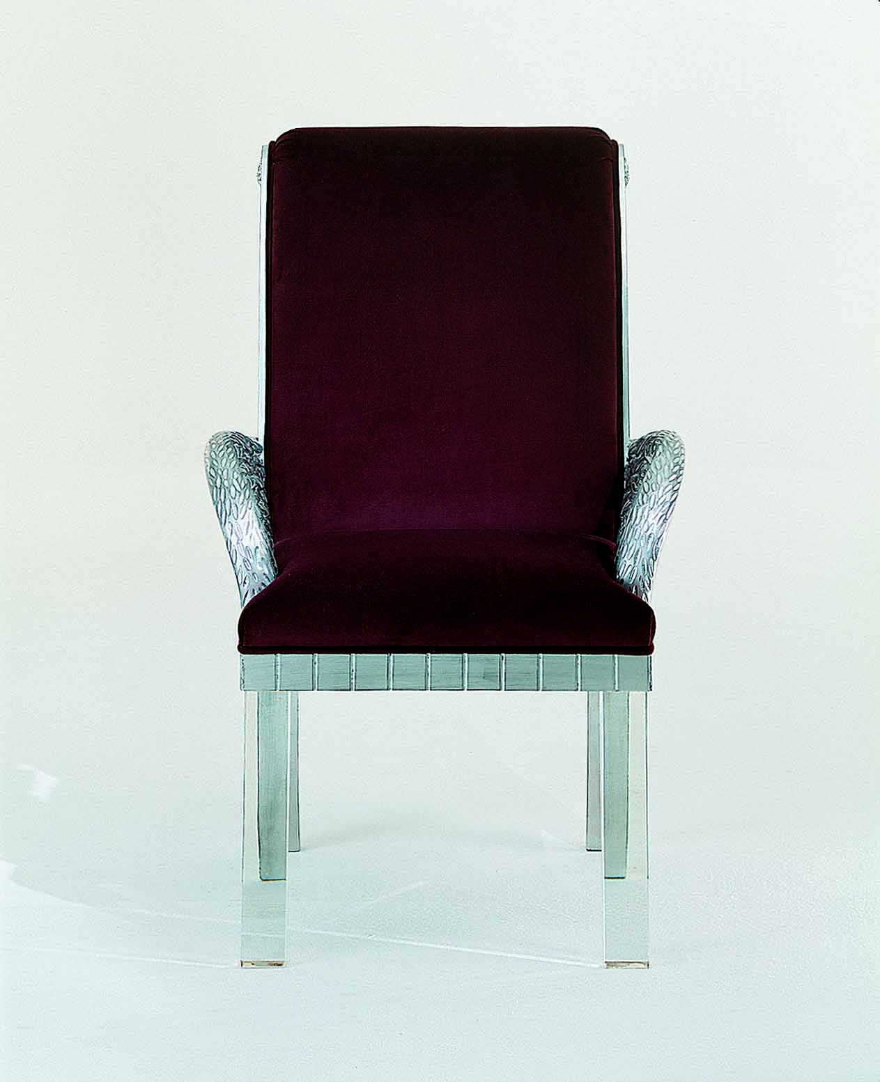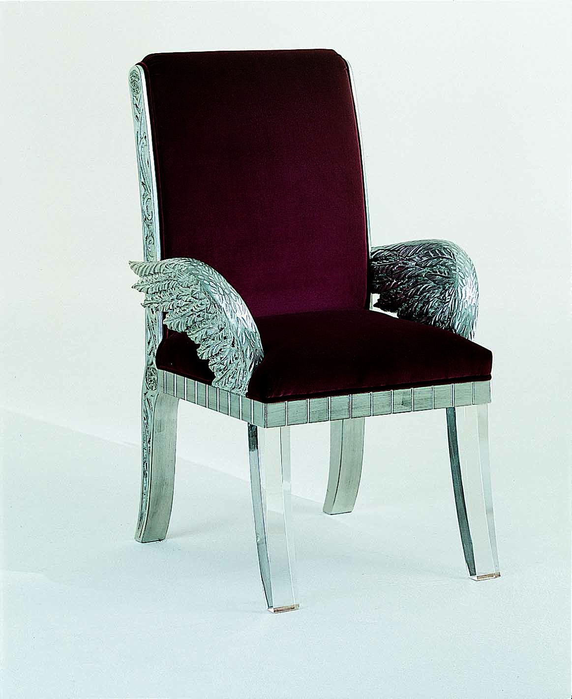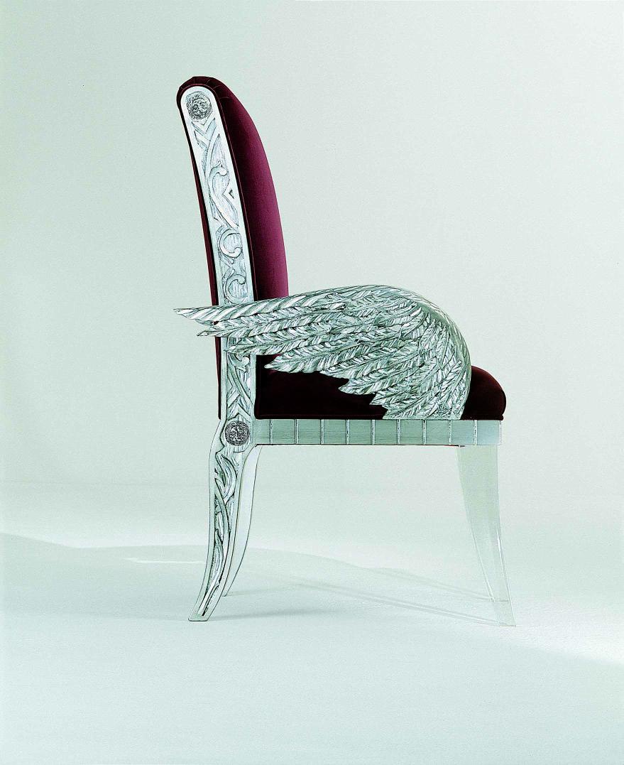 The Future Leggende chair from Italian manufacturer Colombo Stile. The frame is natural wood. Finish - silver foil. Upholstery - textiles. The model is made in modern style. Colours in stock.