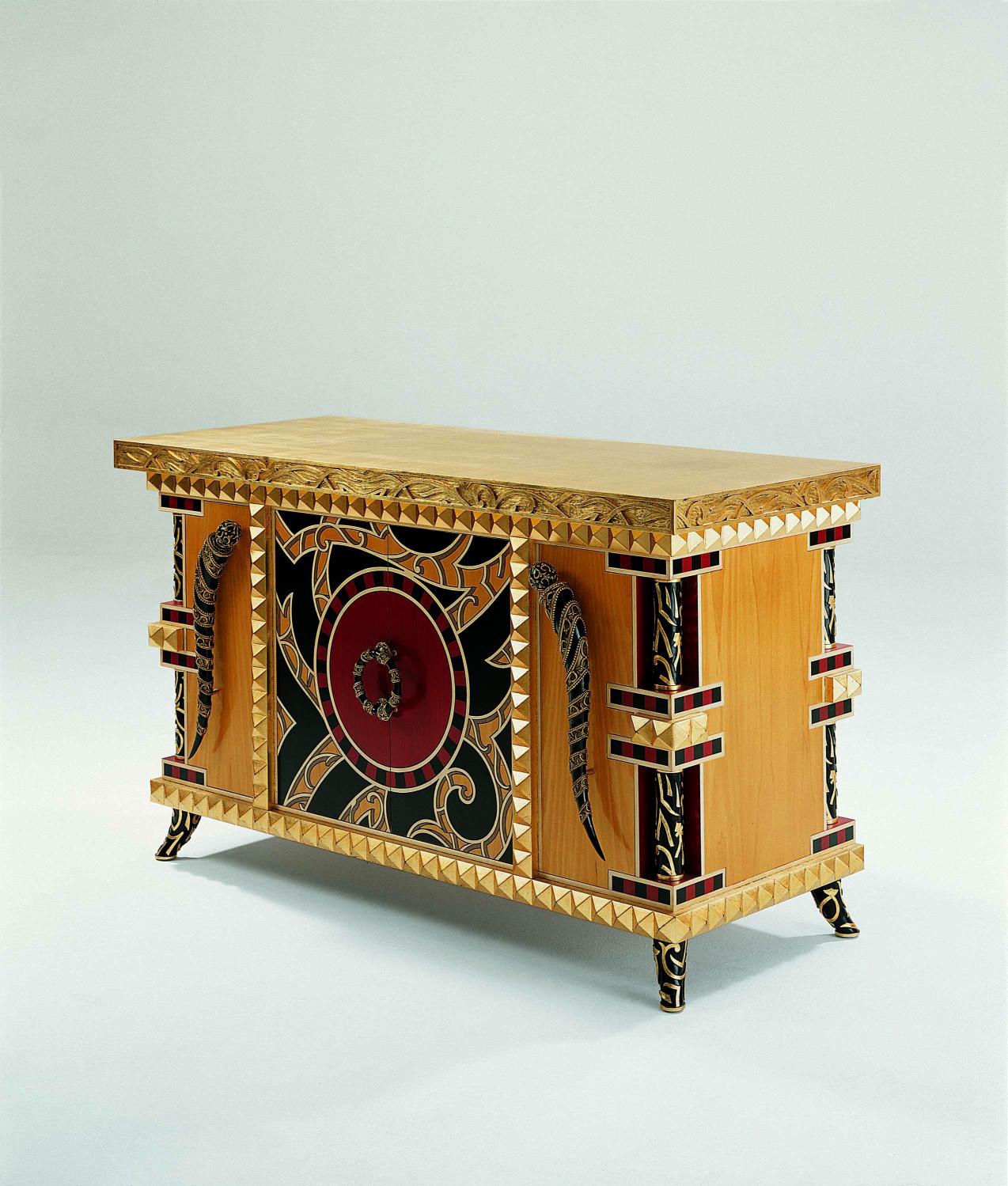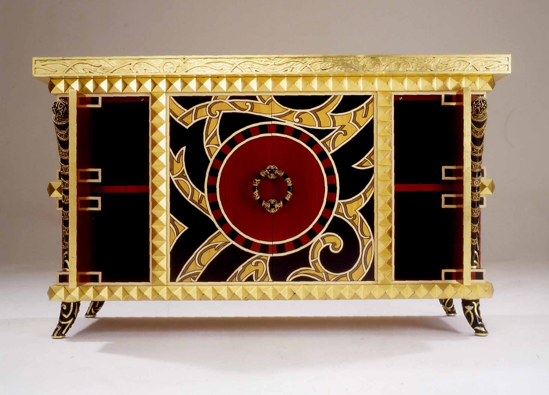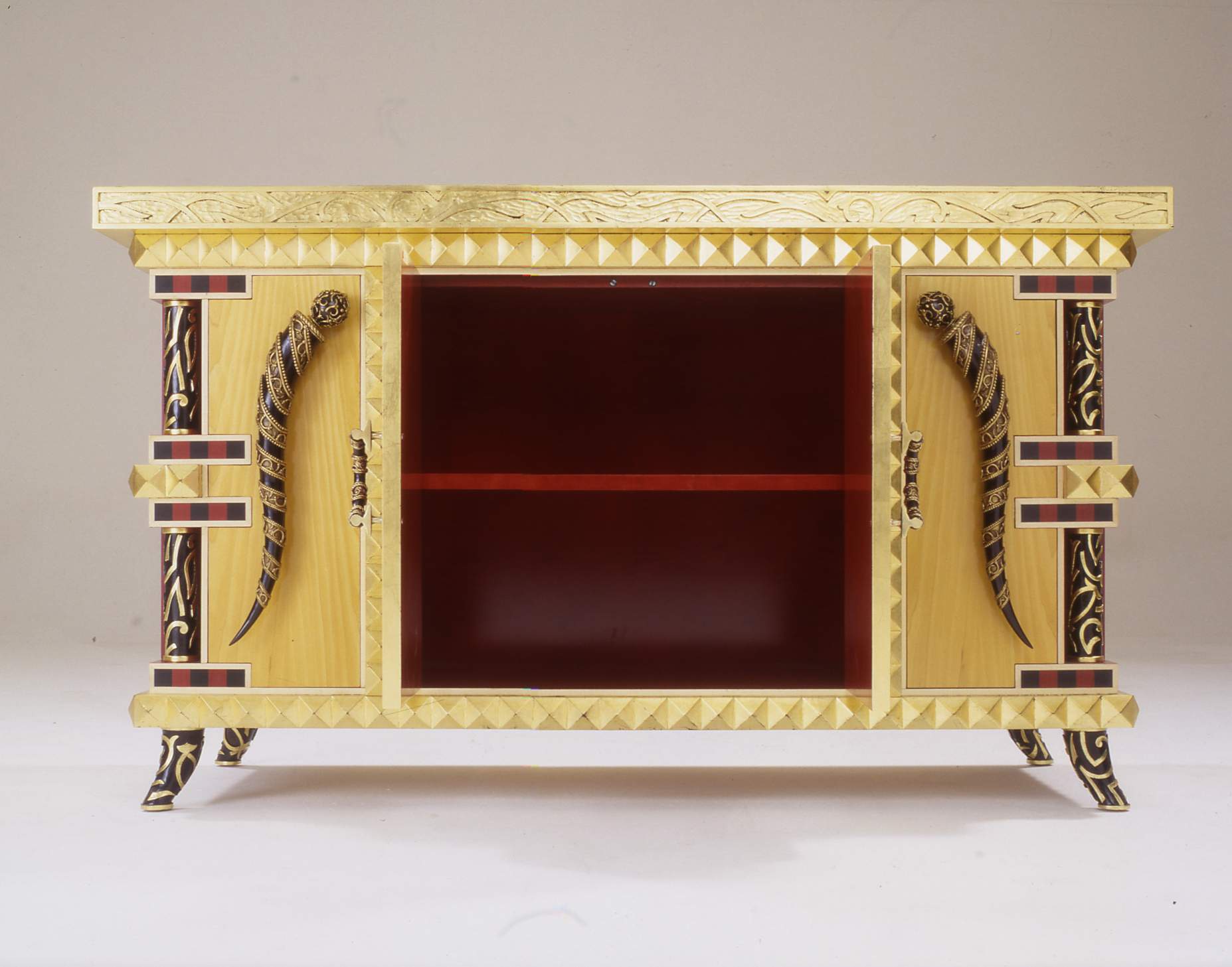 Stand Invito Al Viaggio by the Italian manufacturer Colombo Stile. - The model is made from solid wood. Finish - polished, lacquered and gilded. Handles in bronze. The style is eclectic. Colours in stock.
