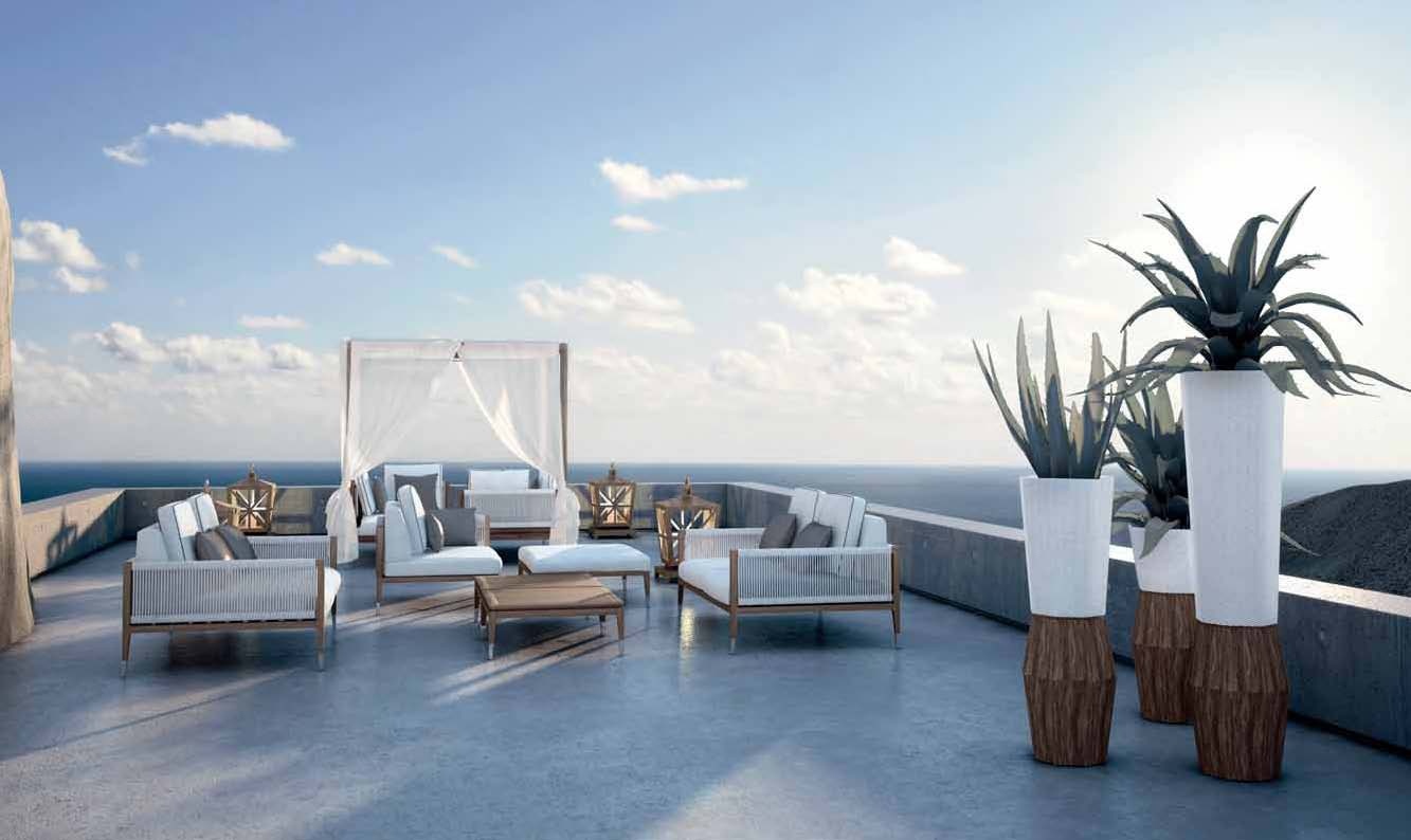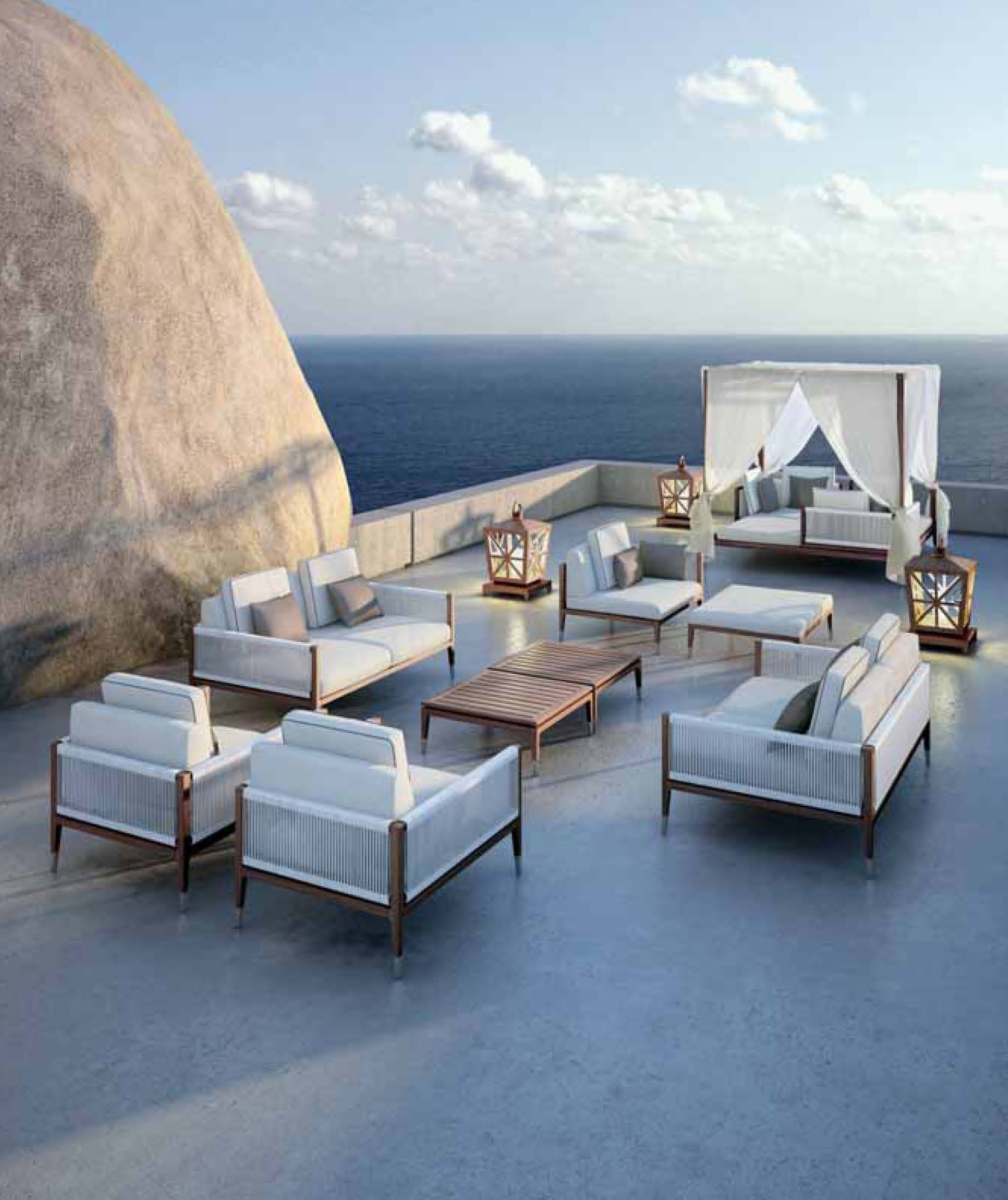 Sofa Costa Rey T Gazebo from the Italian manufacturer Smania. The sofa is designed in modern style. Frames made of solid teak wood with aluminum ferrules. For upholstery, leather or textiles.