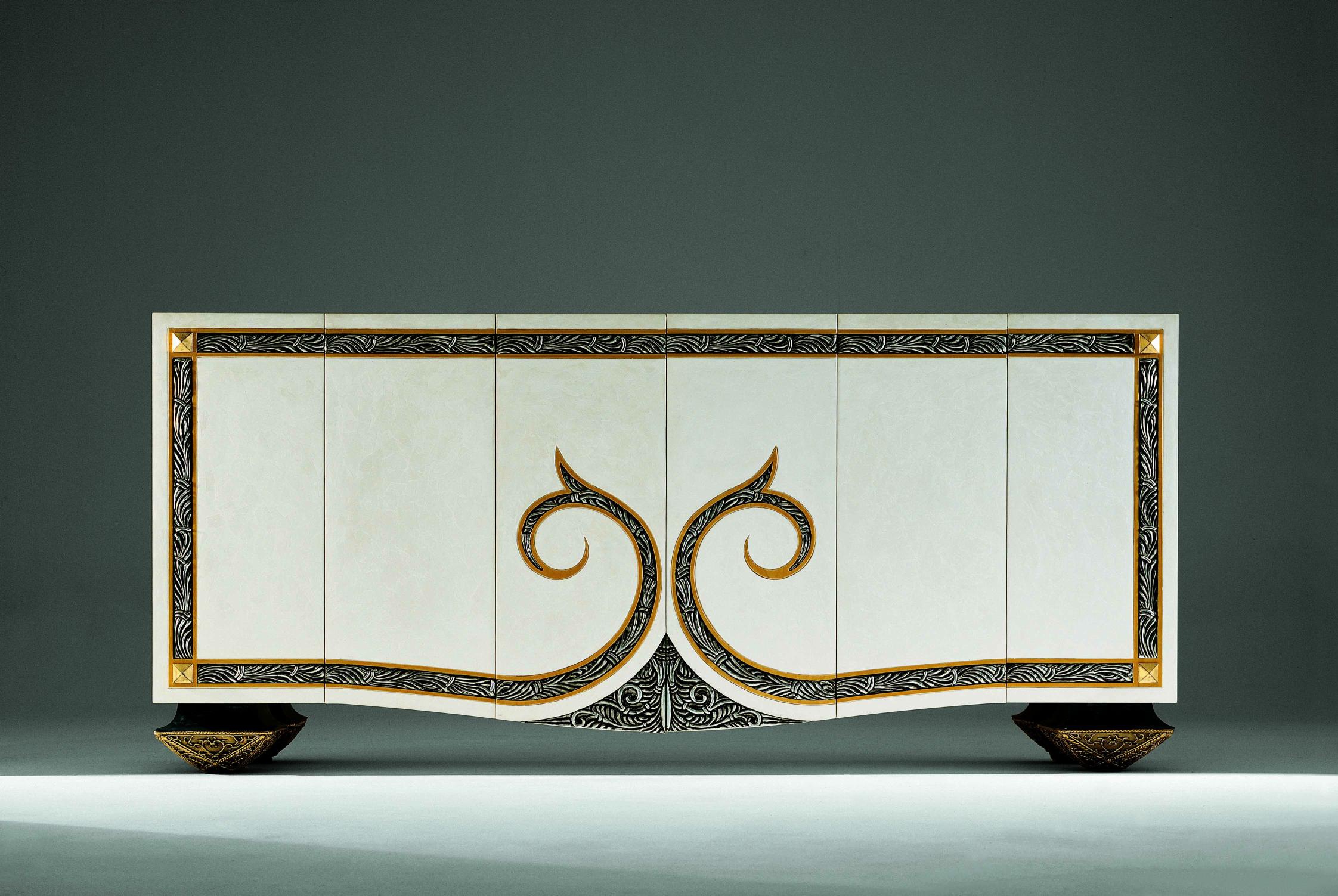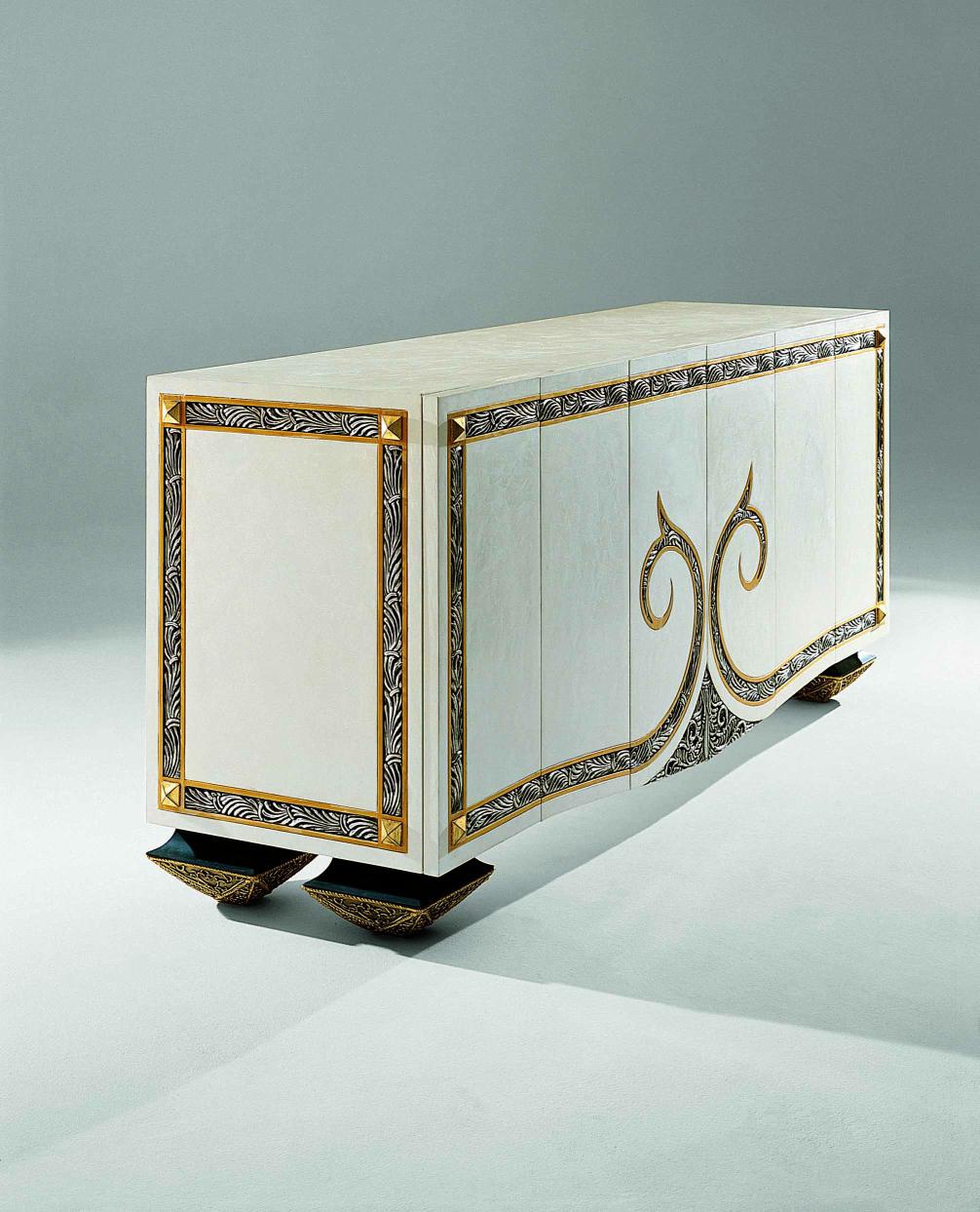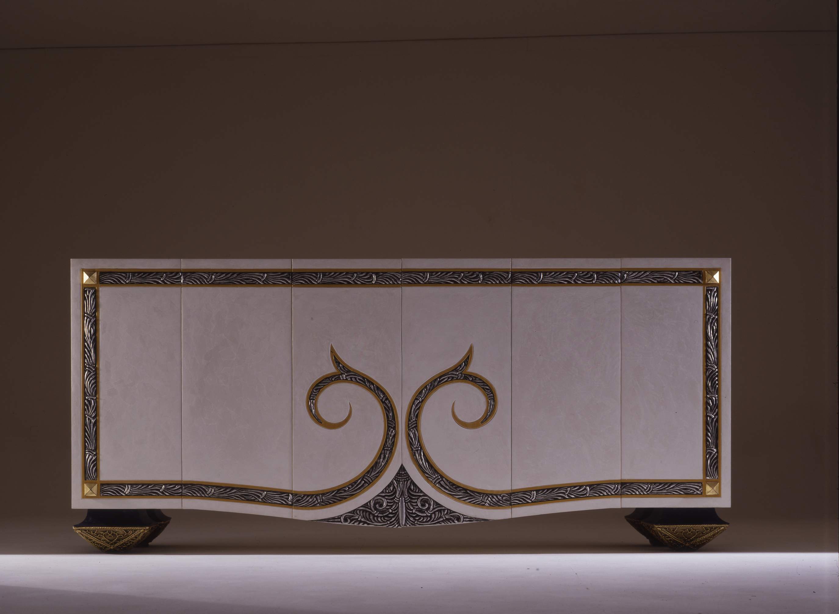 Tumba Una Visione Di Eleganza from Italian manufacturer Colombo Stile. The case is natural wood. Finish: Venetian plaster, silver foil. The style is eclectic. Colours in stock.