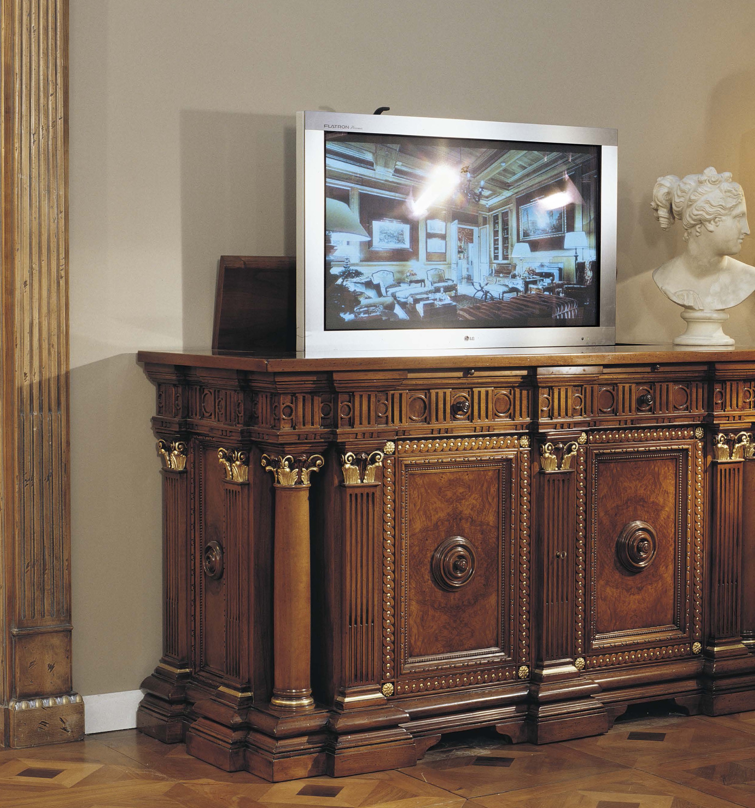 Stand from Italian manufacturer Francesco Molon, a collection of New Empire. Model in the classic style of natural wood. The model is decorated with handmade carving. The choice of color in stock.