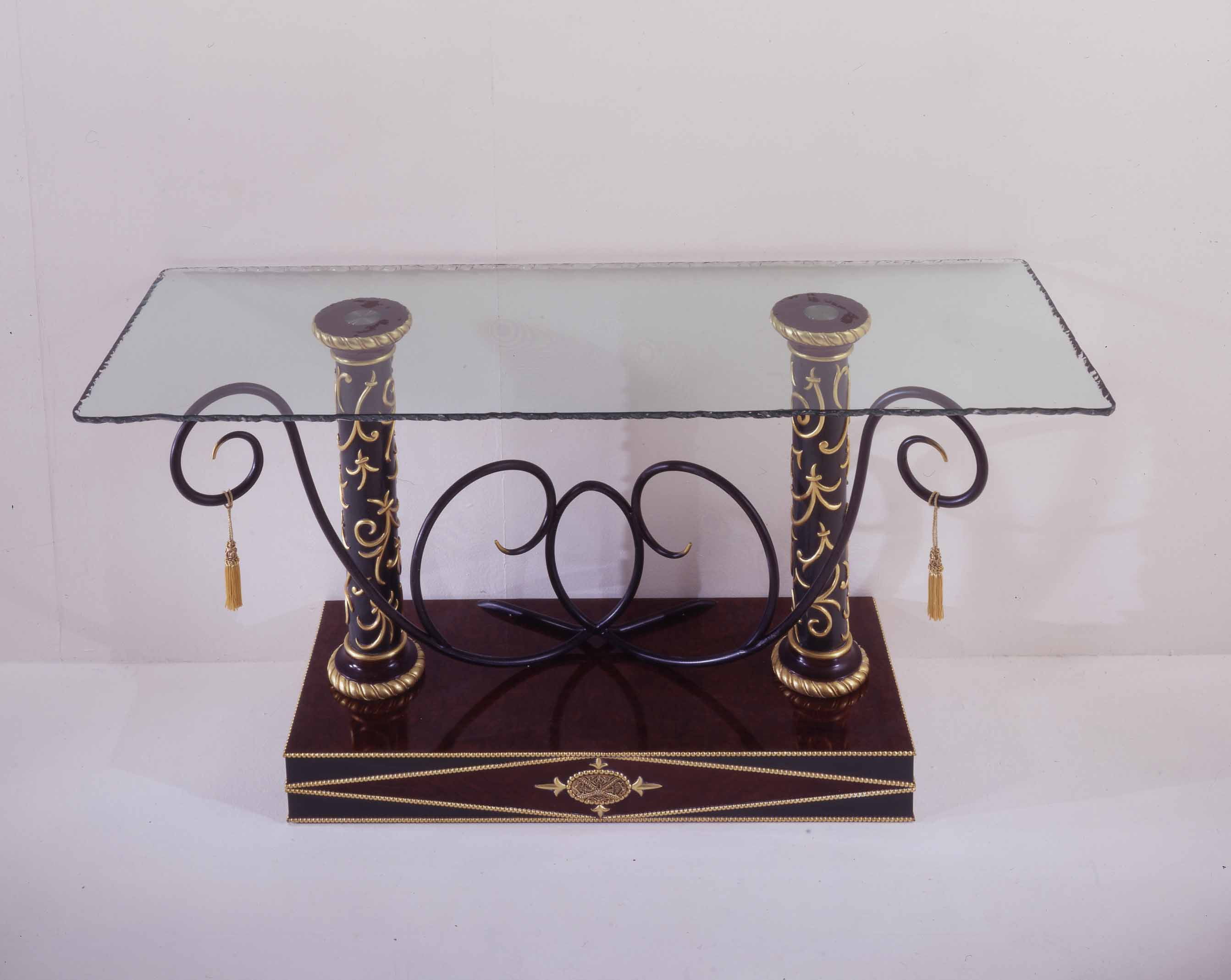 Console Una Visione Di Eleganza from Italian manufacturer Colombo Stile. The frame is natural wood. Worktop - glass. The style is eclectic. Colours in stock.