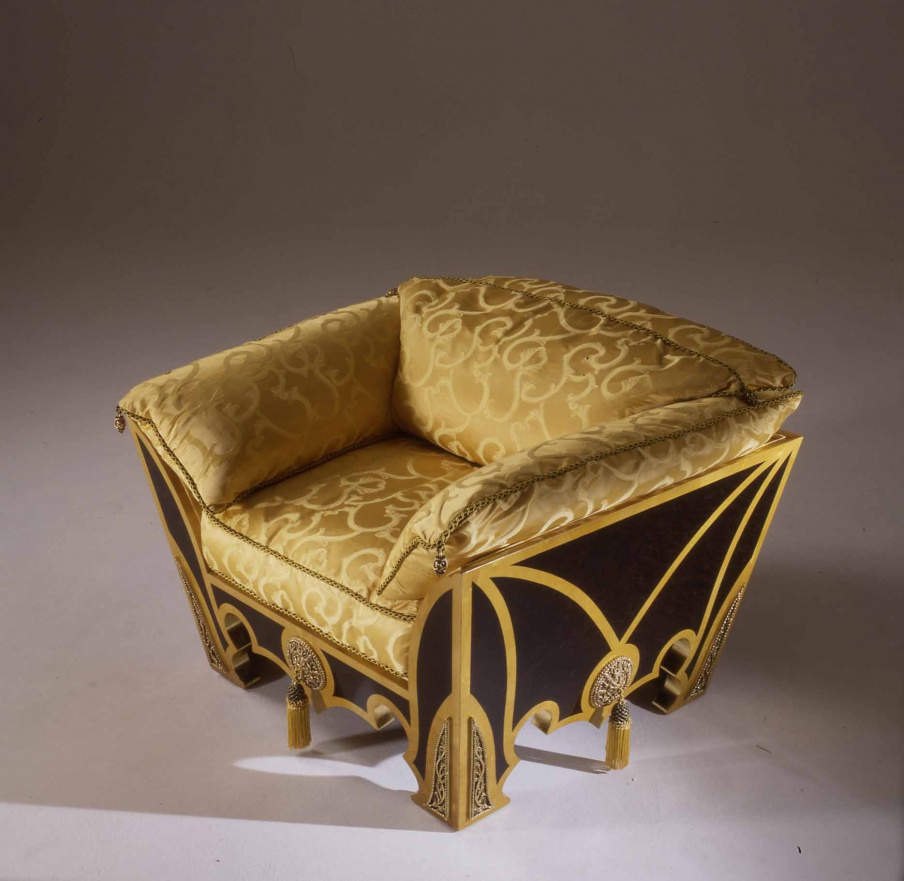 Chair Dietro La Grande Muraglia from Italian manufacturer Colombo Stile. The frame is natural wood. Upholstery - textiles. Filler foam. The model is made in eclectic style. Colours in stock.