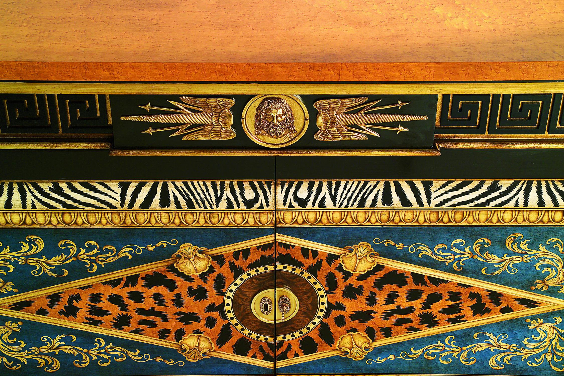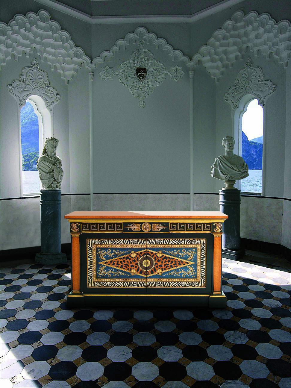 Teacup Treasures from Italian manufacturer Colombo Stile. The model is made of maple, ash and madrone. Finish - tempera paint, gold leaf, inlay of various woods. Bronze plates. The style is modern. Colours in stock.