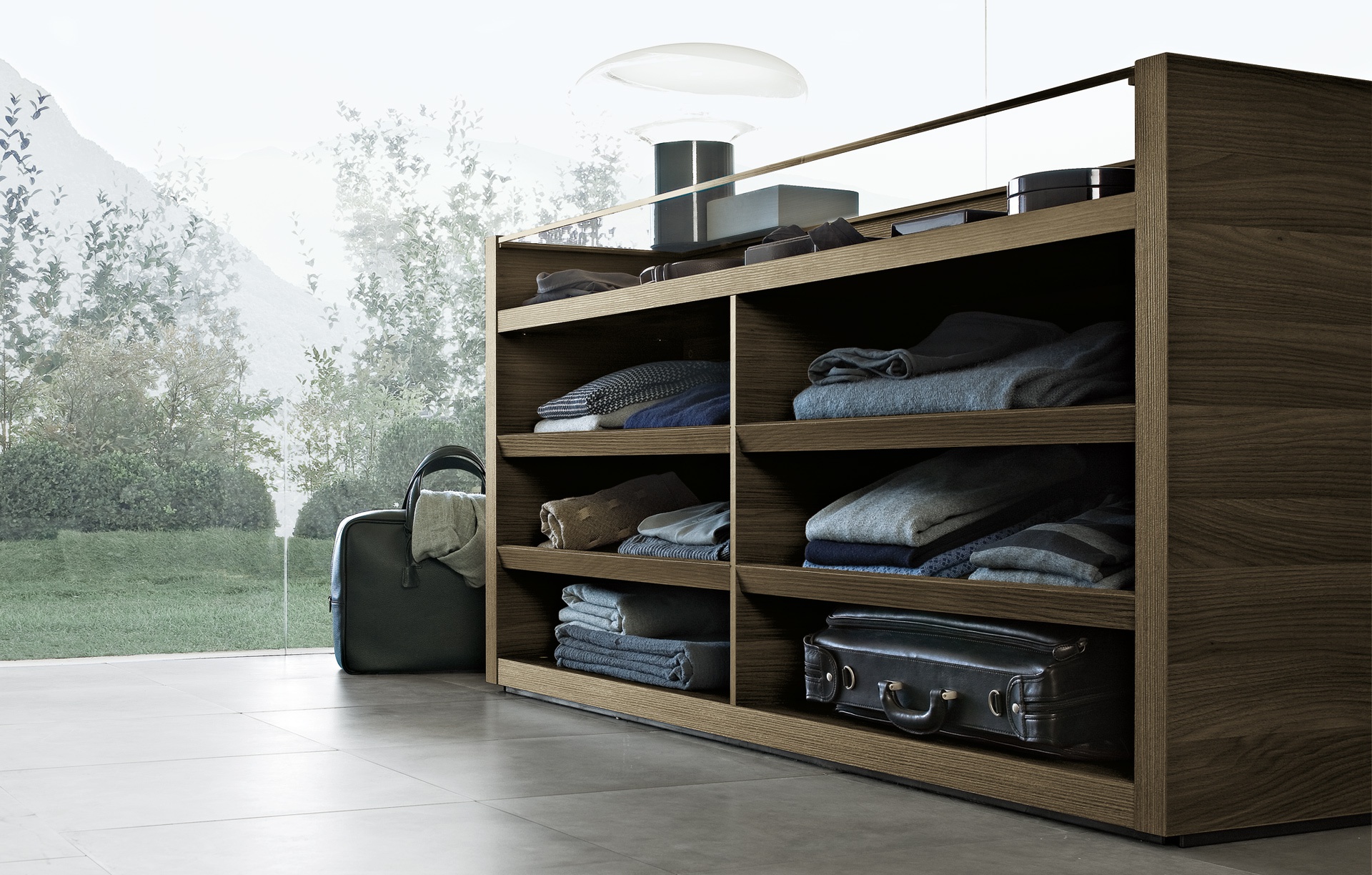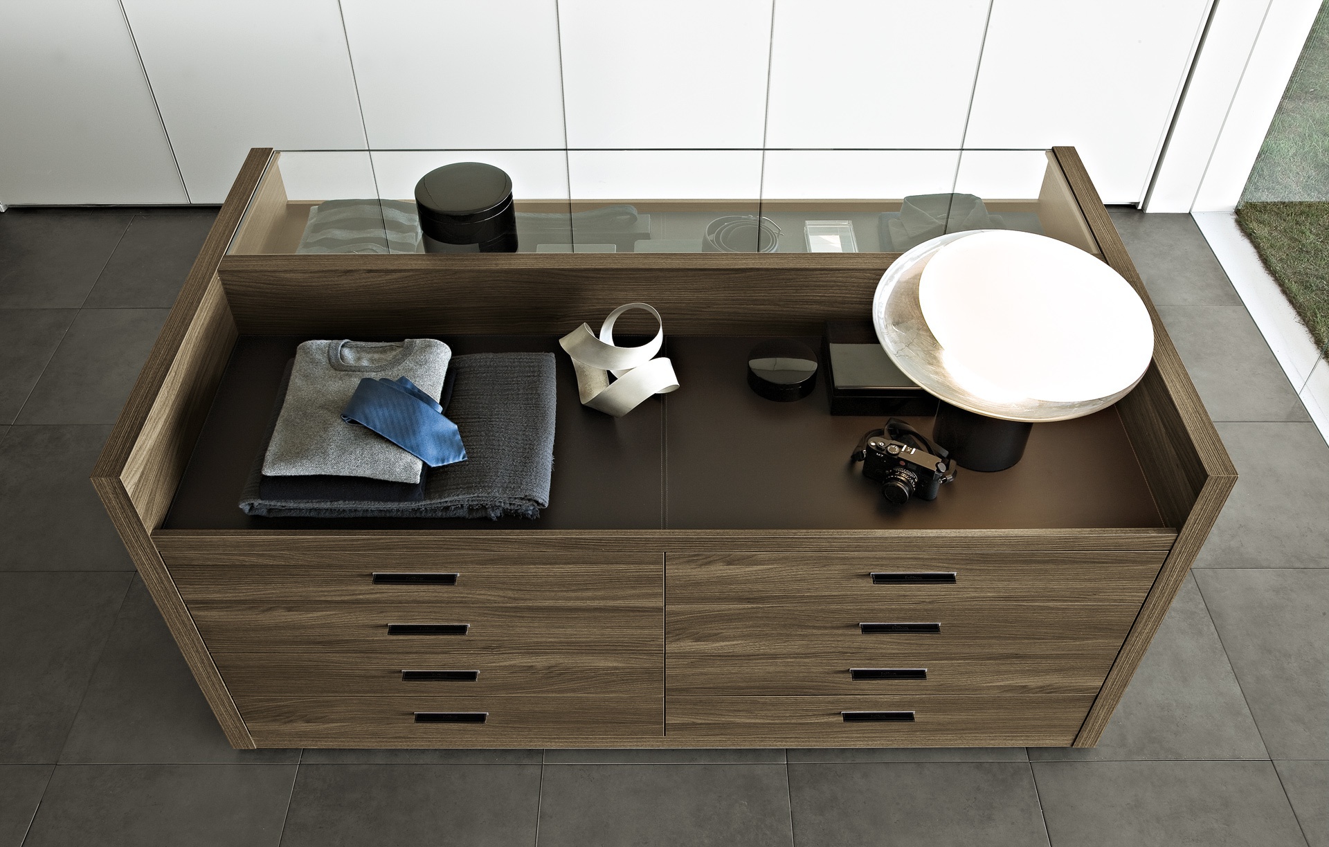 The Tweed chest of drawers from Italian manufacturer Poliform. A model in which functionality and style are the same. Dresser fitted with open shelves and drawers for storage. The lightweight design attaches to top of glass. The factory offers a choice of two finishes veneer - stained oak and walnut. The modern style of execution.