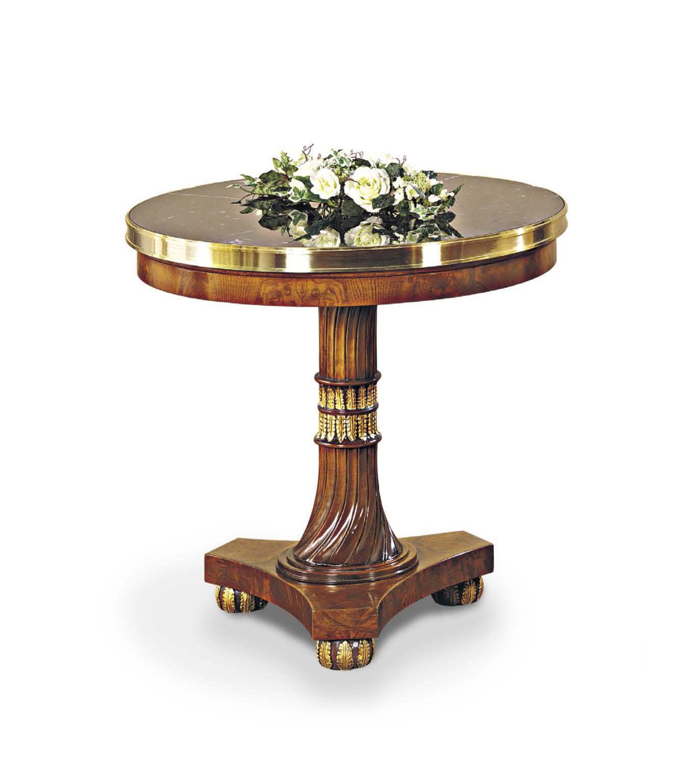 Round coffee table from the Italian manufacturer Francesco Molon, a collection of New Empire. The table in classic style from solid wood. The model is decorated with hand-carved in gold-plated finish. Colours in stock.