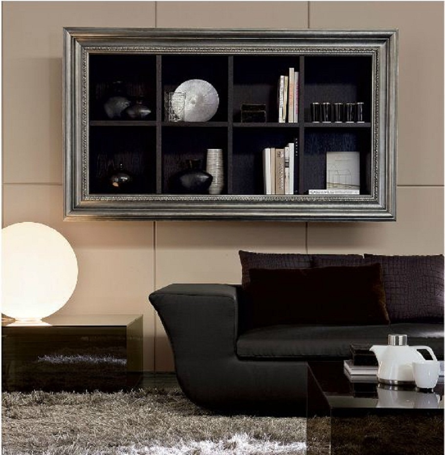 Wall shelf for books Casablanca from the Italian manufacturer EGO. The frame and inner shelves made of wood. Model with lots of open shelves ornate carved frame. Shelves displayed in grey colour. The model is made in art Deco style. Perfect for a living room, a personal office or library.