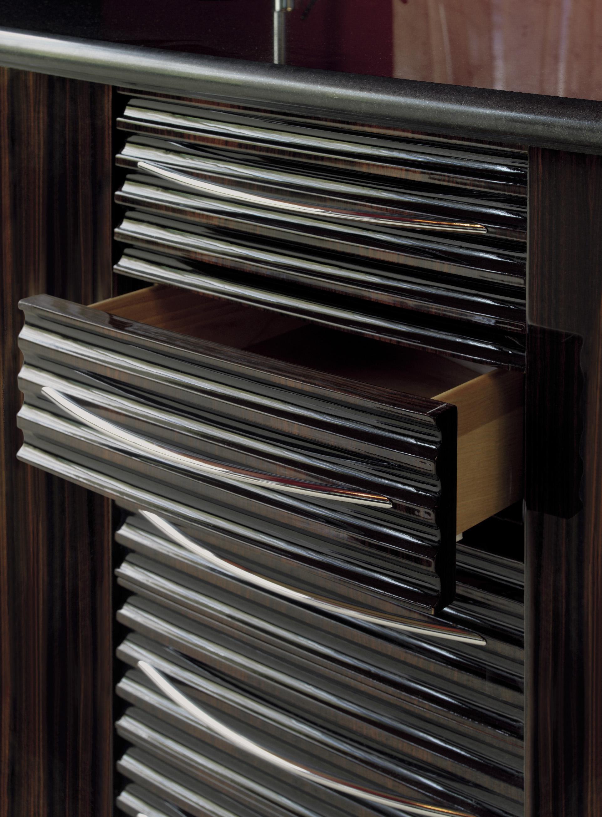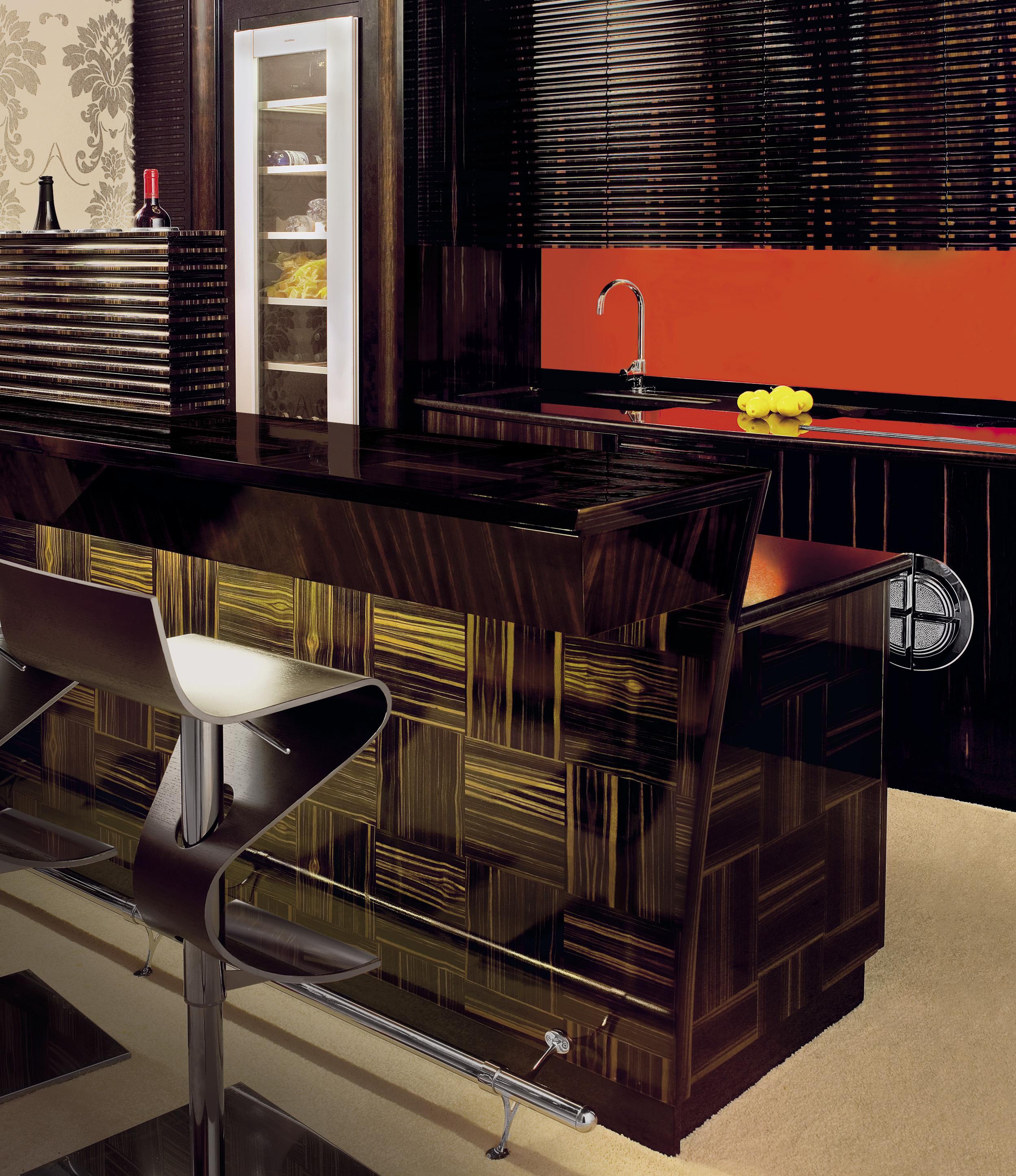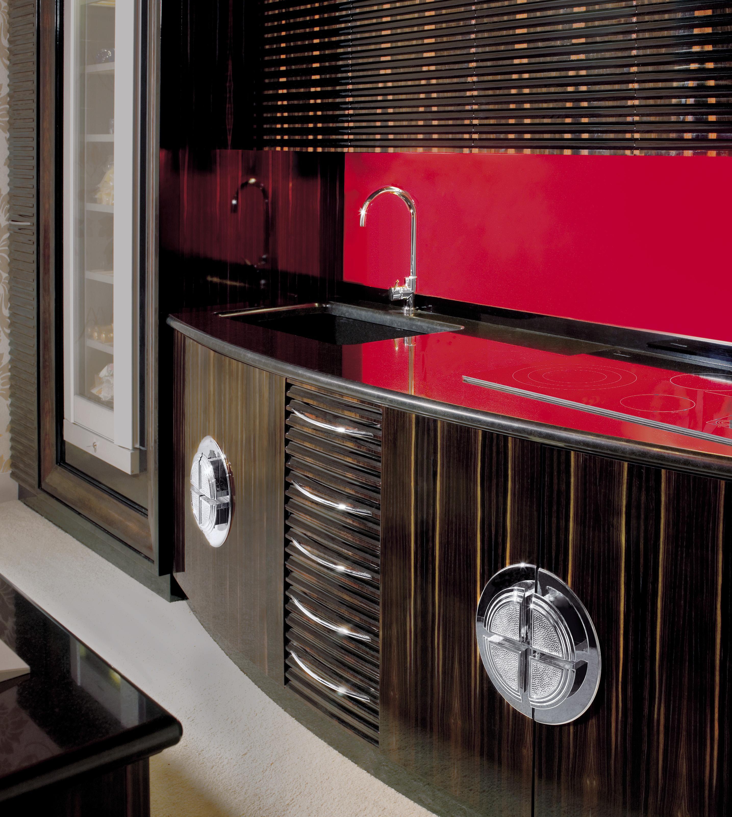 Kitchen (kitchen set) Unyca from the Italian manufacturer Francesco Molon, a collection of Eclectica. The kitchen is in art Deco style, made of natural wood. Fittings - stainless steel. Colours in stock.