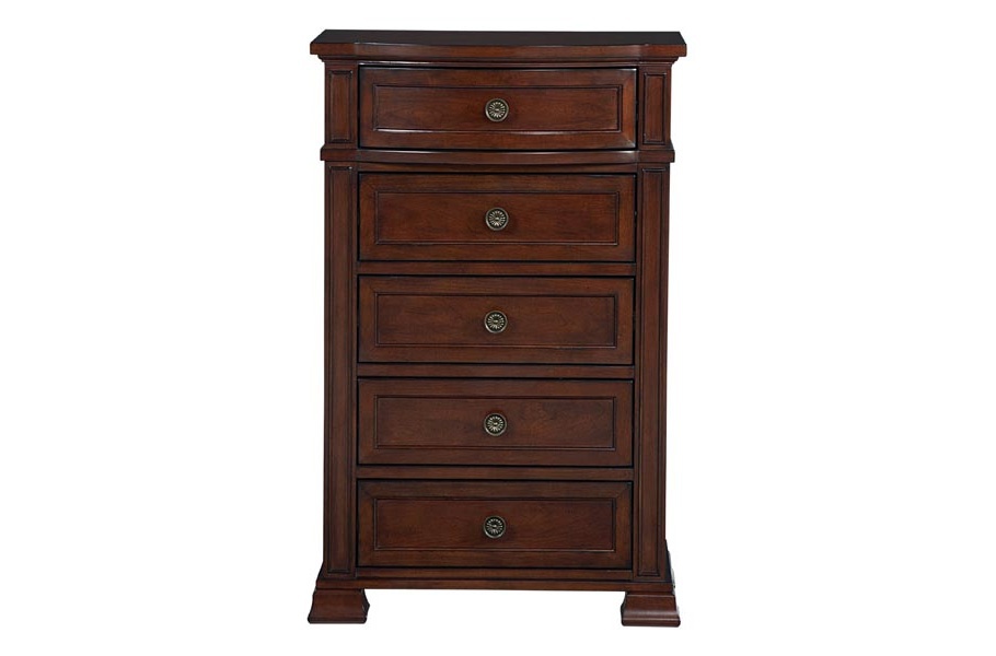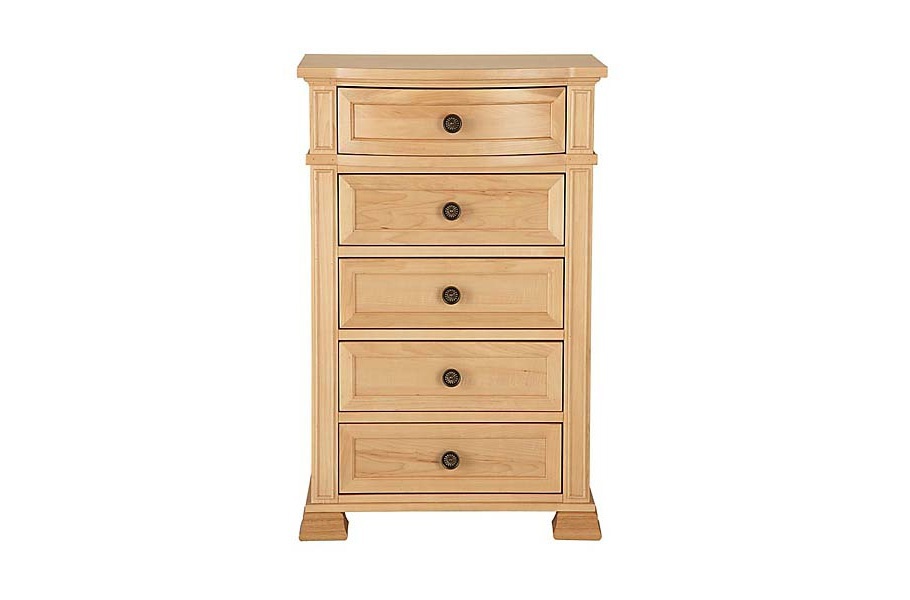 Sheraton Court dresser from the American manufacturer Bassett. Made of wood with a different range of finishes. The model has five drawers with extended rails. Available for special order with washbasin. Also available with a natural finish on a solid basis of white poplar or maple veneer. The modern design.