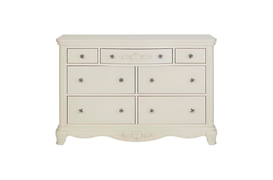 Dresser Addison from the American manufacturer Bassett. Made of wood with different finishes. Available with a natural finish on a solid basis of white poplar or maple veneer. The model has seven drawers with extended rails. Decoration are carved elements on the housing.