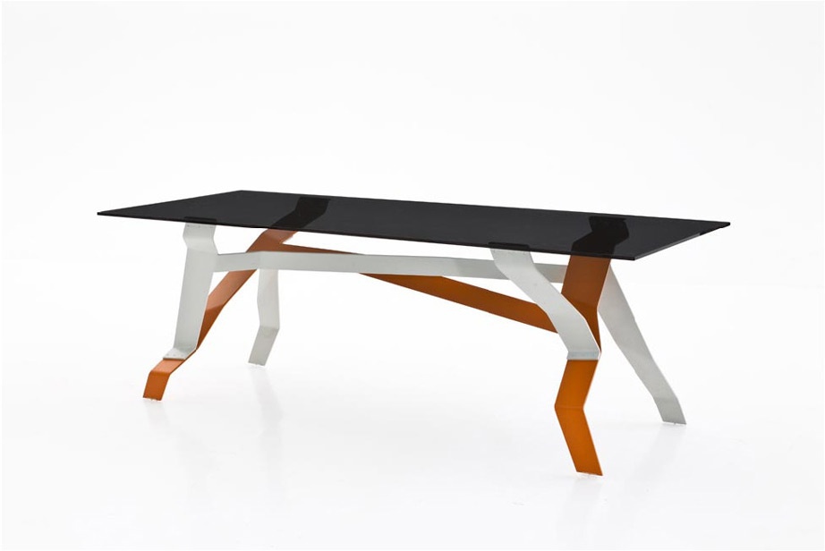 Dining table Countach from the Italian manufacturer Moroso. The Desk is available in two sizes. The table top is made of tempered glass or smoky white color. Base of painted steel, color to be selected from the manufacturer's catalogue. The model is conceived for spacious houses and offices.