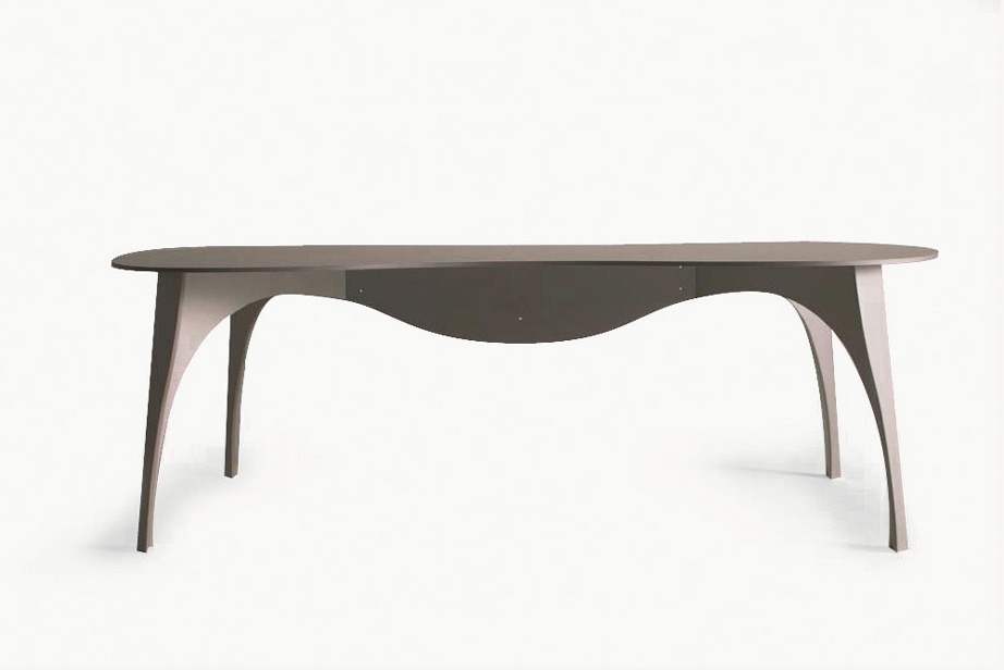Dining table No Waste from the Italian manufacturer Moroso. The table is available in two finishes: from solid sheet aluminum or steel with protective wax. The top is designed so that all parts are obtained from a single sheet of ultralight aluminum. The model is made in modern style. Colours in stock.