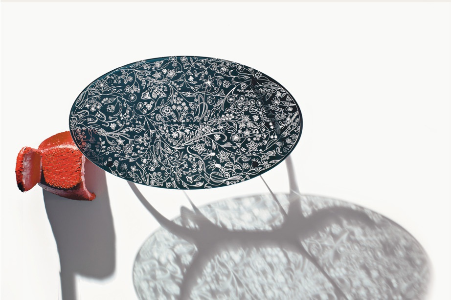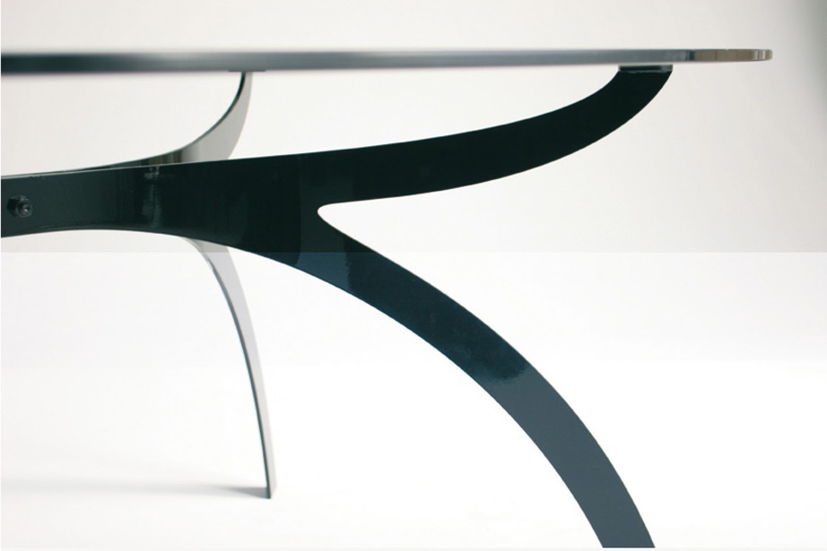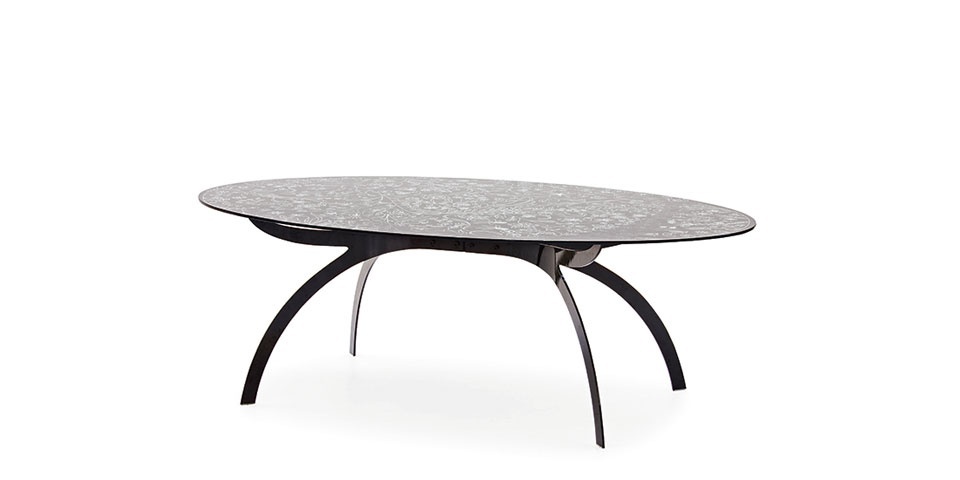 Dining table Oval Table from the Italian manufacturer Moroso. Base in steel powder coated black or white high gloss lacquer. Table top made from tempered black glass or artificial white stone, decorated with pattern. The model is made in modern style.