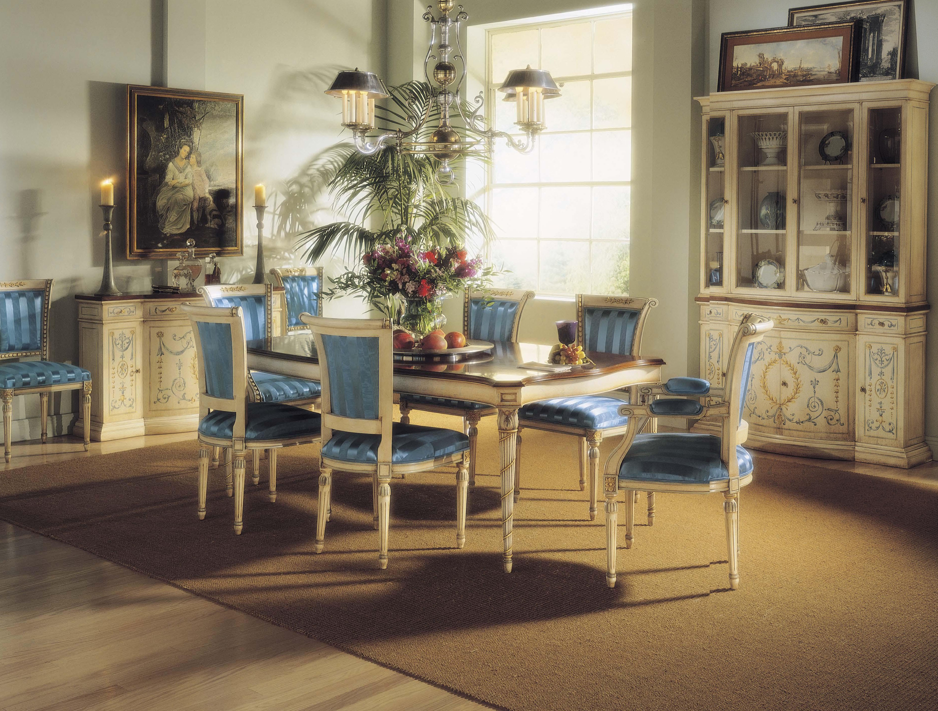 Dining table from the Italian manufacturer Francesco Molon, a collection of 18 th Century Collection. Model in classic style, made of natural wood, decorated with carved handmade elements. Finish - lacquer, gilding. With an extra 50cm insert that allows you to increase the length of the table. Colours in stock.
