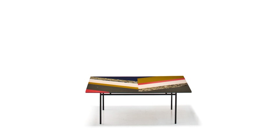 Fishbone coffee table from the Italian manufacturer Moroso. Table top in rectangular shape is made of methacrylate, available in three finishes. Steel base painted in Matt black color. Table will fit perfectly and will decorate the interior of your home.