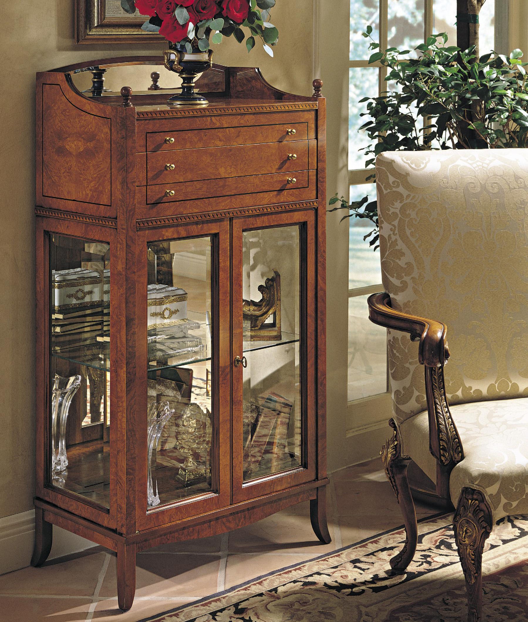 Low showcase from Italian manufacturer Francesco Molon, a collection of 18 th Century Collection. Model in the classic style. The case of natural wood, finish - varnish. Shelves and doors are made of glass. Colours in stock.
