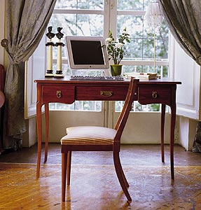 Desk from the Italian manufacturer DOLFI. The frame is made from solid wood in the finishing varnish. Model with drawers of different depth. Decorative accessories - metal. A great choice for the office in classic style. Product color natural wood.