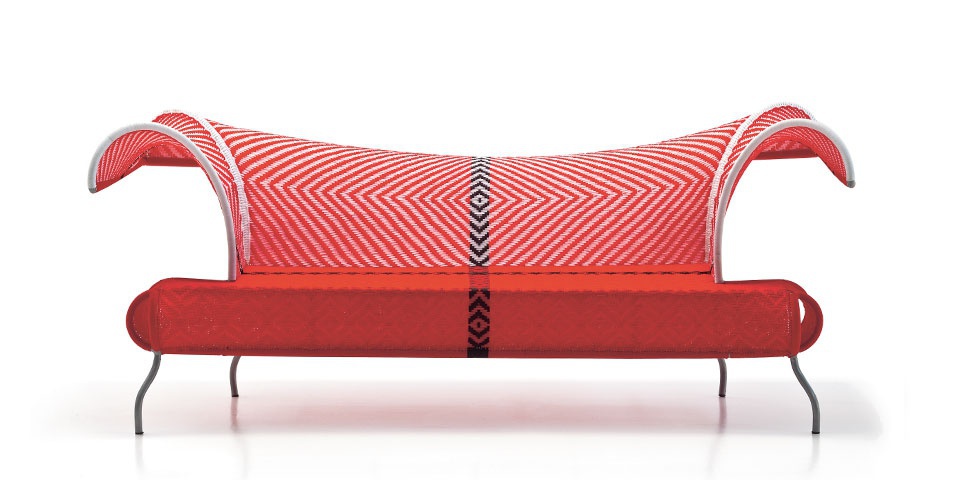 Cardamone sofa from Italian manufacturer Moroso. The frame is made of painted steel. Colorful pattern made from polyethylene strands, handmade. Each product is unique, and any differences in colors are not considered a defect. Factory offers four colors. Model with rounded shapes are sure to add flavor to your summer terrace.