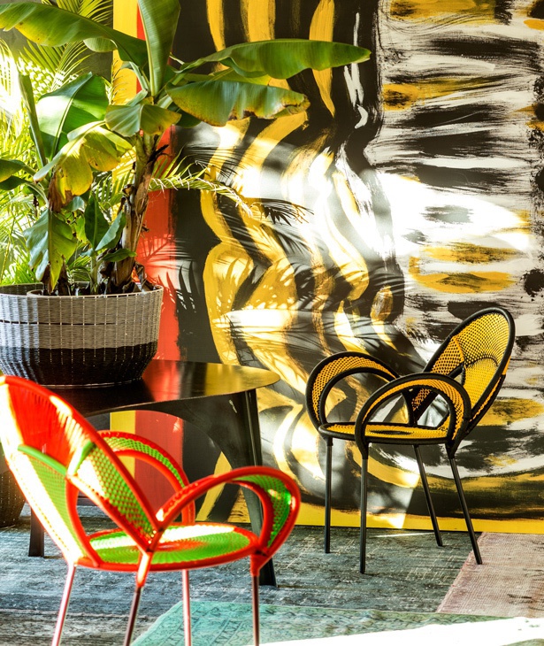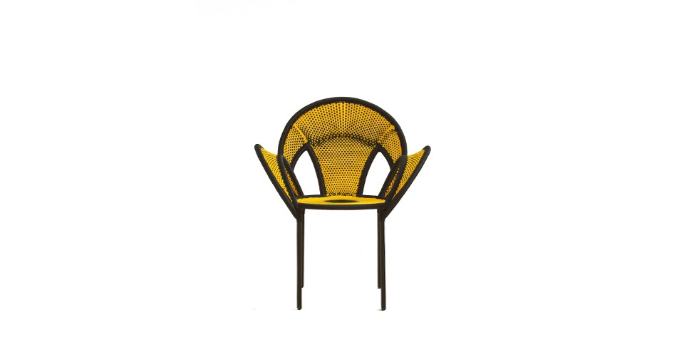 Banjooli chair from the Italian manufacturer Moroso. The frame is made of painted steel. Colorful pattern made from polyethylene strands, handmade.Factory offers a variety of color combinations. The model is in modern style, combines tradition and design.