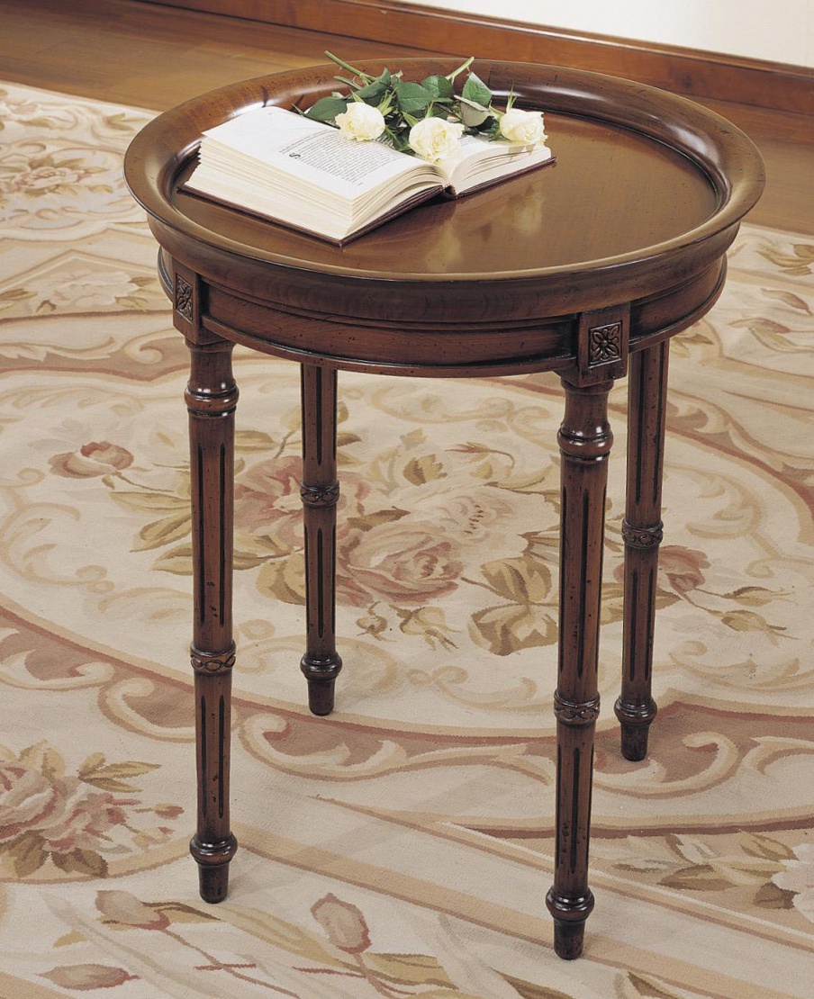 Round coffee table from the Italian manufacturer Francesco Molon, a collection of 18 th Century Collection. Model natural wood finish - varnish. Complement the d?cor carved elements. Colours in stock.