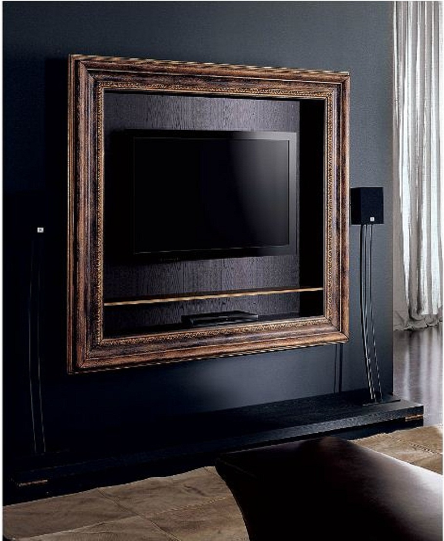 Wall shelf for TV CASABLANCA from the Italian manufacturer EGO. The frame is made of wood. The model consists of two sections with wooden partitions. Supplements shelf decorative frame, patinated copper. Colors: natural wood. The model is made in art Deco style. Perfect for living room or office.