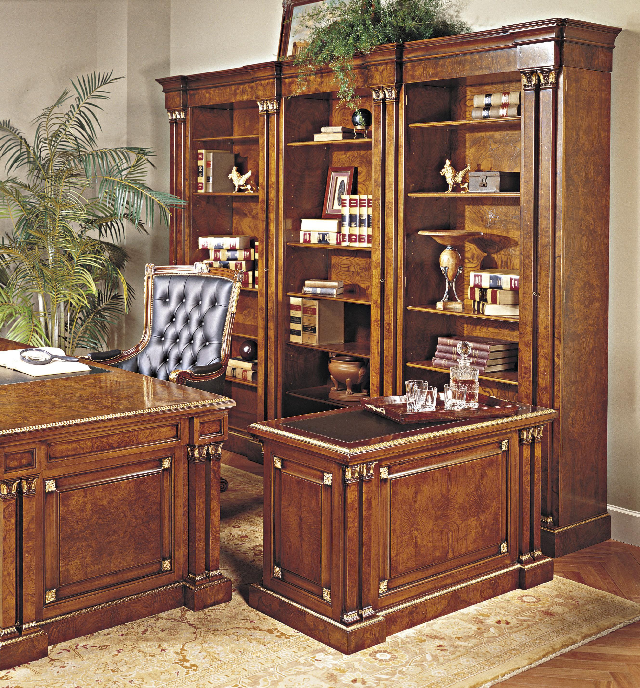 Desk from the Italian manufacturer Francesco Molon, collection Executive. The model is made in classic style of natural wood decor - carved elements and gold-plated finish. Top - skin. The choice of color in stock.