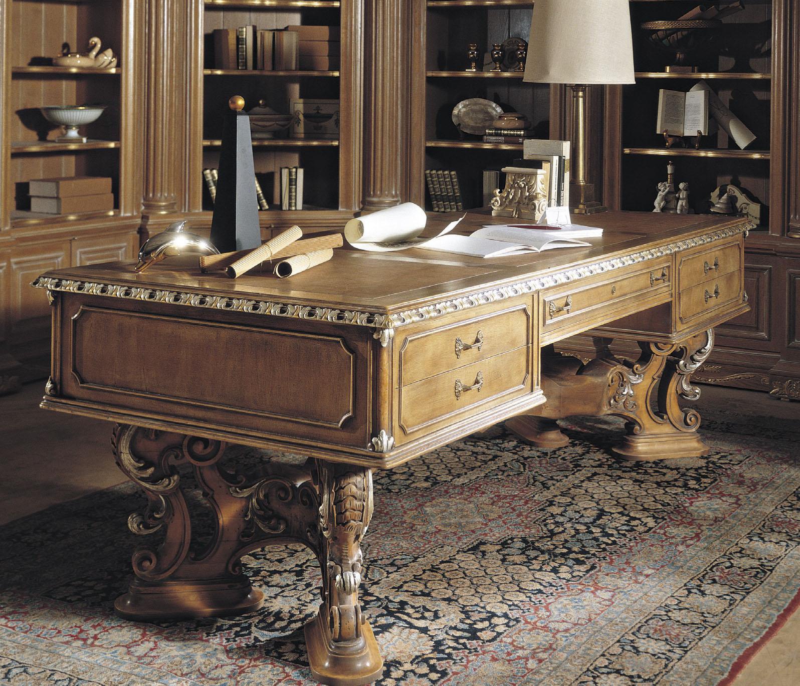 Desk from the Italian manufacturer Francesco Molon, collection Executive. The model is made in Baroque style made of natural wood, carved elements - handmade. Colours in stock.