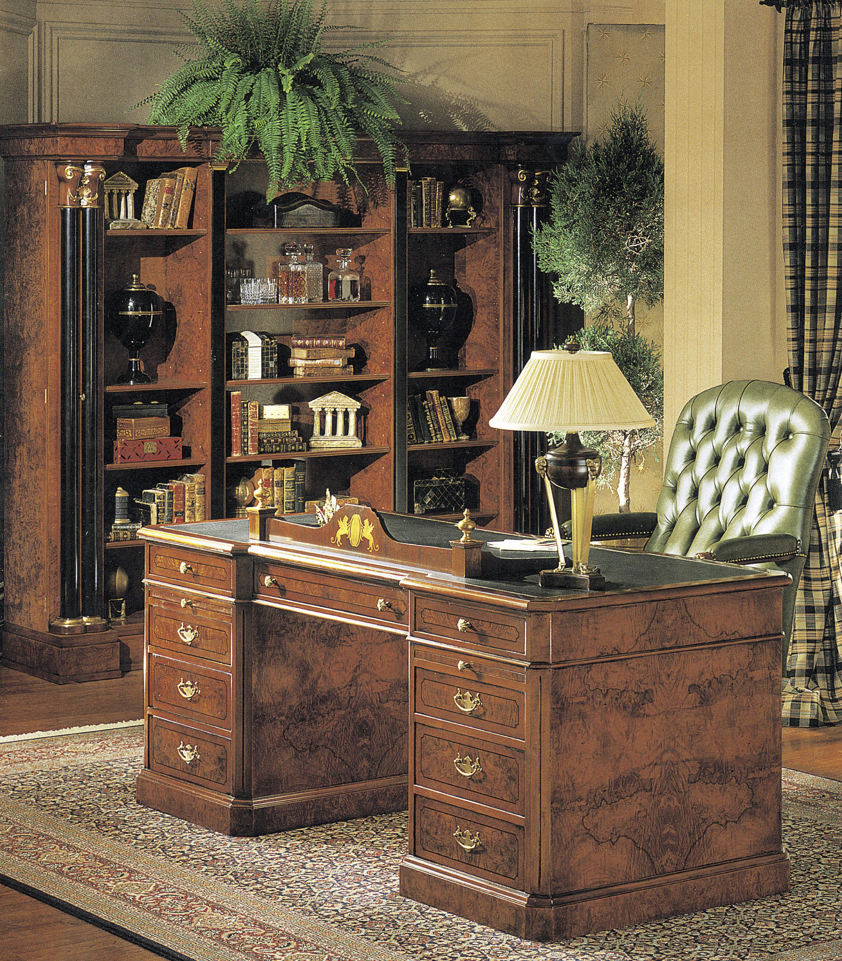Desk from the Italian manufacturer Francesco Molon, collection Executive. The model is made of wood. Metal handles in a gold plated finish. Colours in stock.