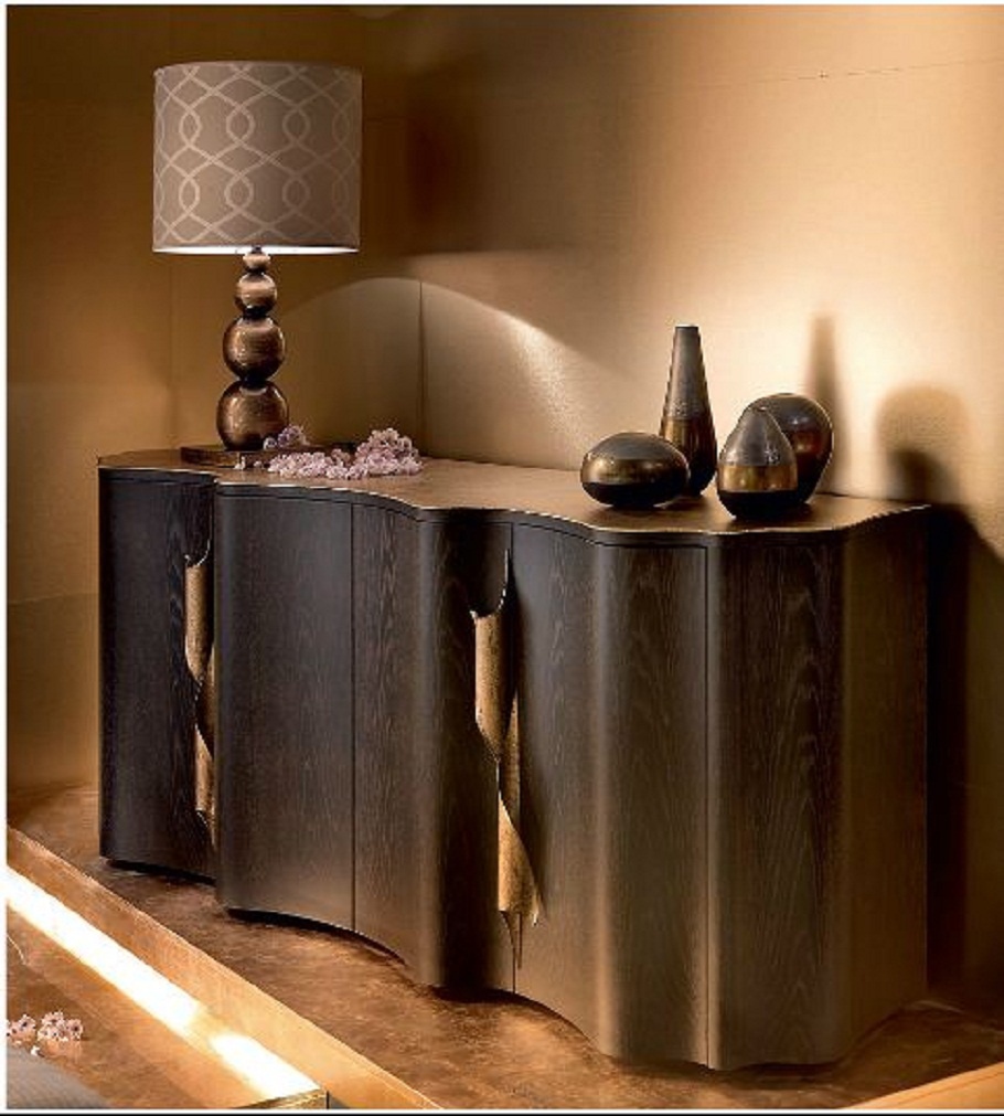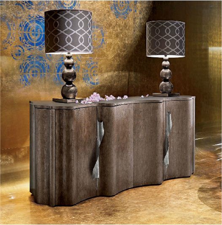 The buffet Sipario from the Italian manufacturer Ego. Frame and doors made from natural wood. Decor products elegant accessories made of chrome steel. The model is made in modern style. Colors: brown. Soft smooth lines of the sideboard will perfectly complement the interior of the dining room or living room, will help to divide the space into zones.