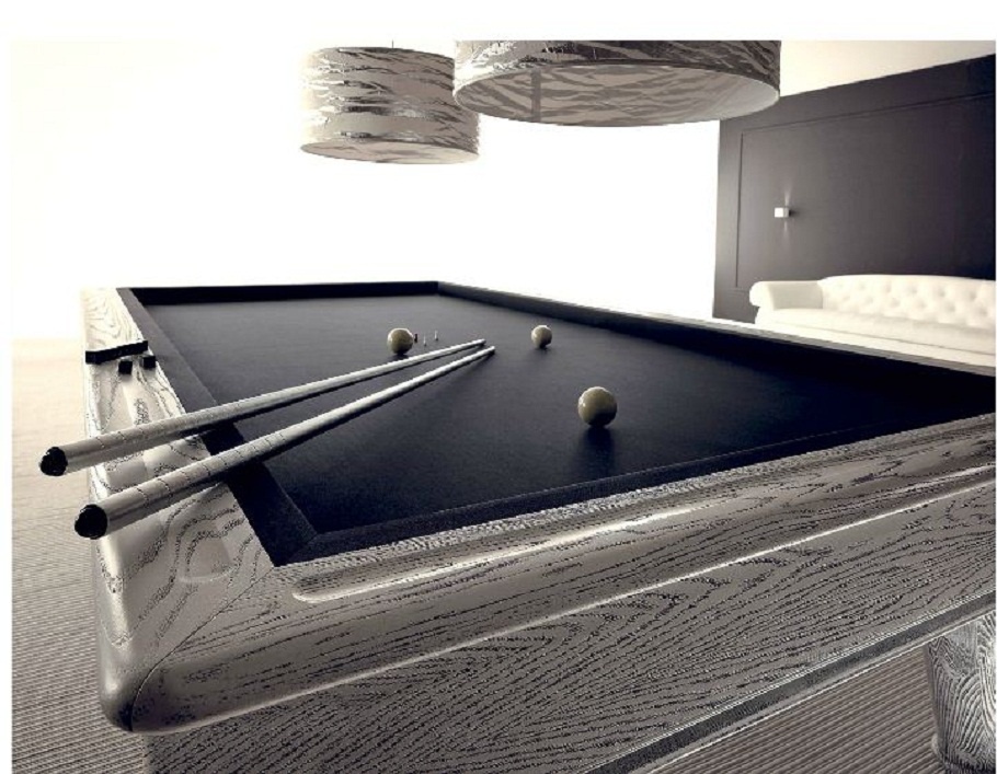 Newman billiard table from the Italian manufacturer EGO. The frame and legs are made of polished natural wood, countertop - textiles. Color range: grey. The size of the playing field 2700*1350 mm. the set includes balls, 4 cue with stand, the counting Board. Strict thorough design will perfectly complement a pool first-class cabin.