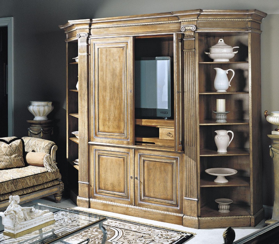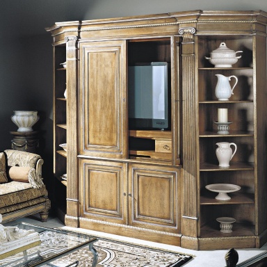 Wall with TV from Italian manufacturer Francesco Molon. Model from a collection of Italian and French Country is made of natural wood, finishing lacquer. Carved items - handmade. Colours in stock.