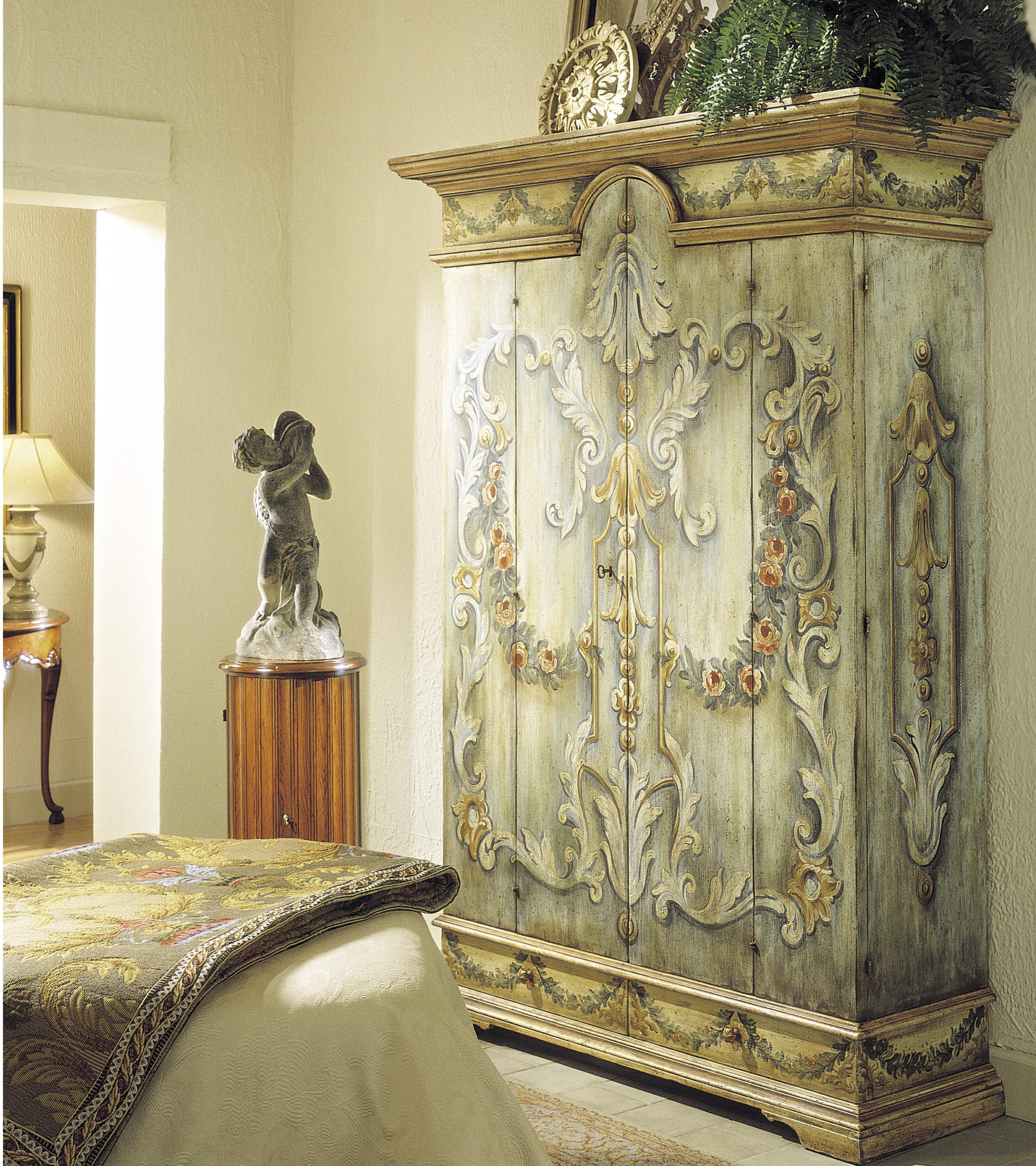 Wardrobe from the Italian manufacturer Francesco Molon. Model from a collection of Italian and French Country is made of natural wood. The facades are decorated with paintings. Colours in stock.