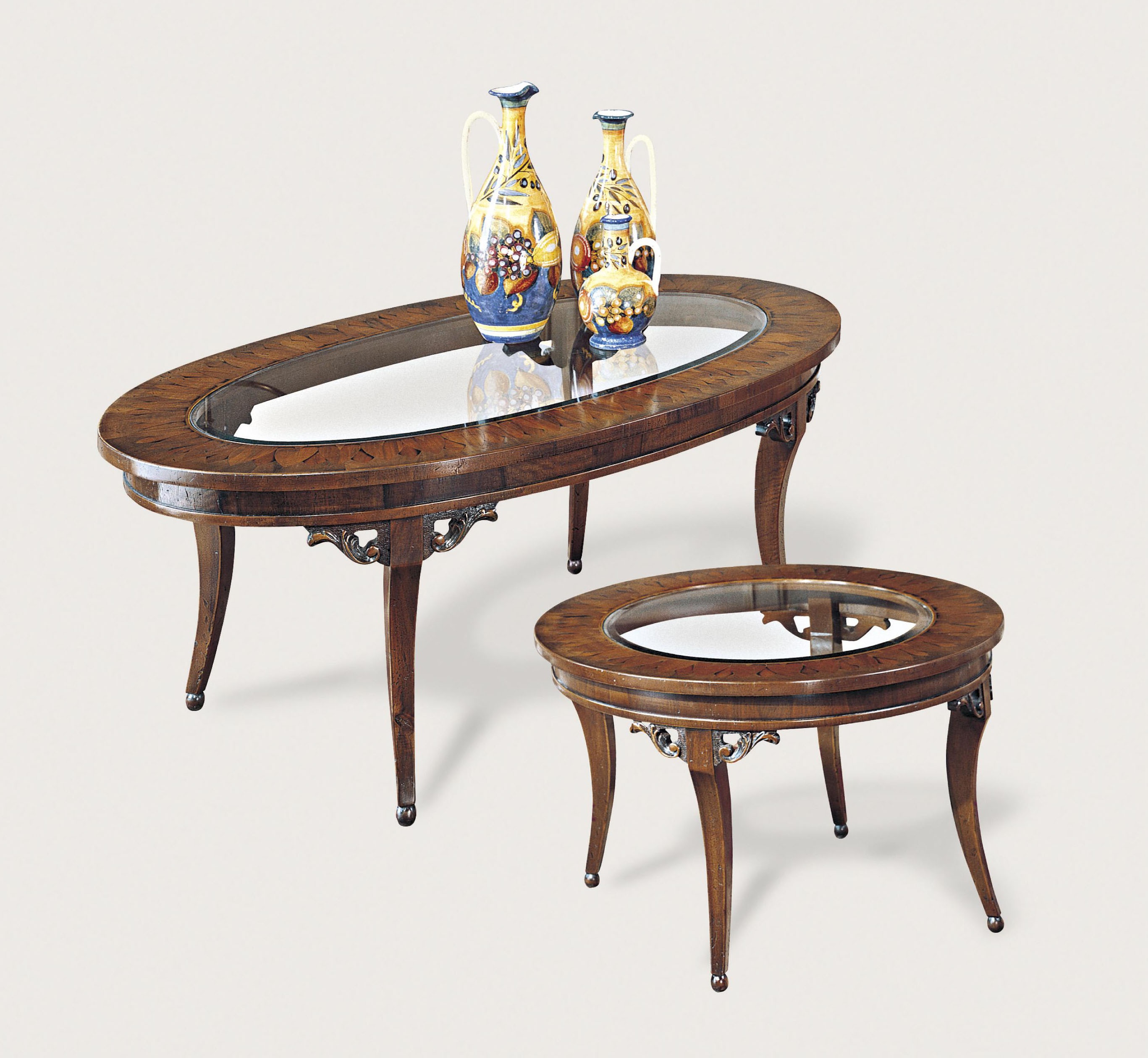 Coffee table from the Italian manufacturer Francesco Molon. Model from a collection of Italian and French Country classic d?cor. The frame is made of real wood, finish - lacquer, carved handmade items. Worktop - glass. Colours in stock.