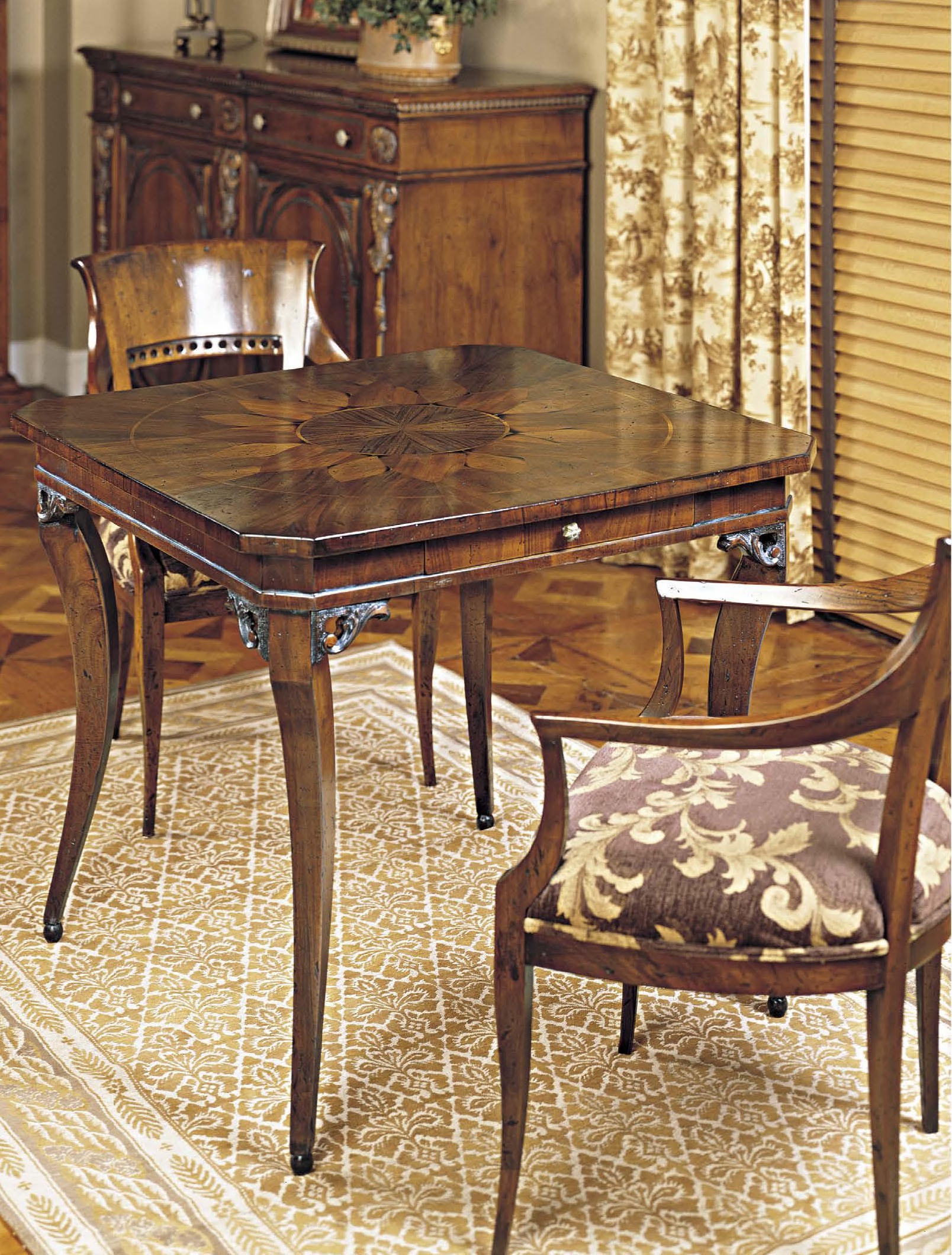 Gaming table from the Italian manufacturer Francesco Molon. Model from a collection of Italian and French Country classic d?cor. The frame is made of real wood, finish - lacquer, carved handmade items. Colours in stock.
