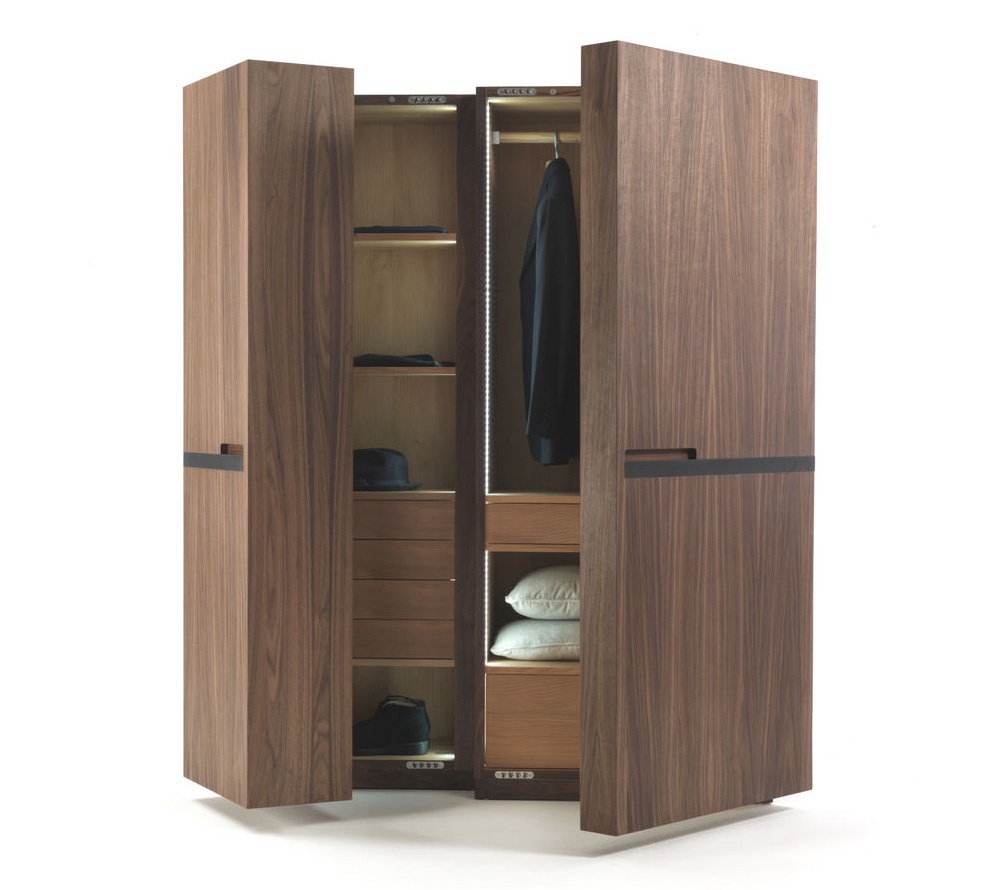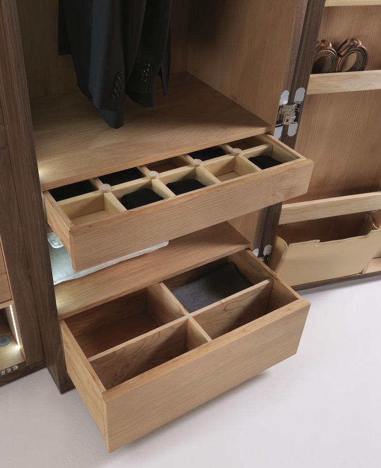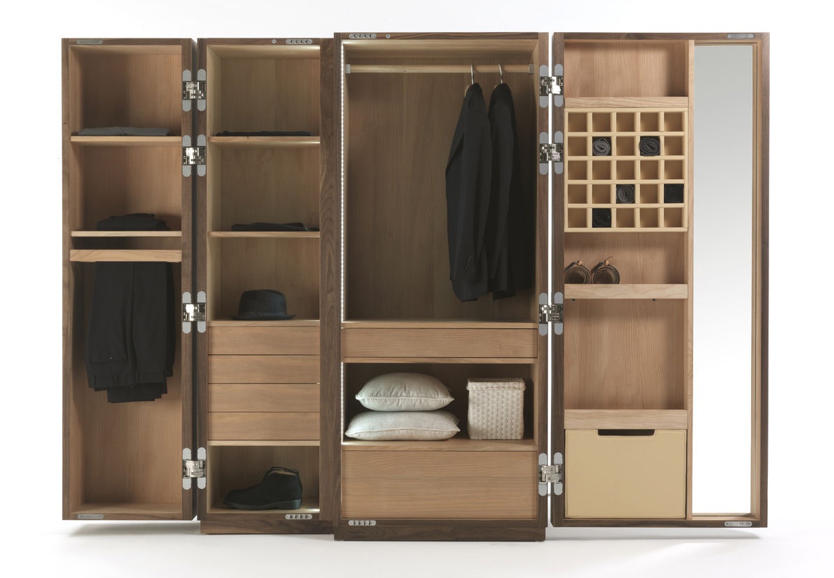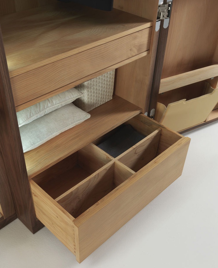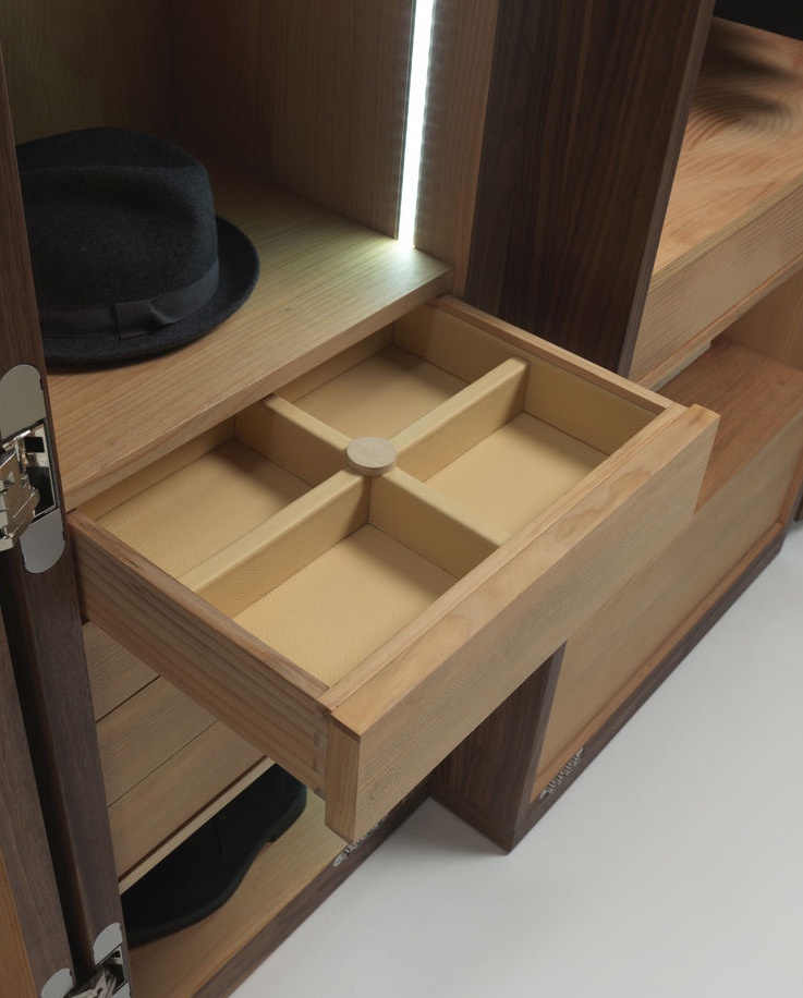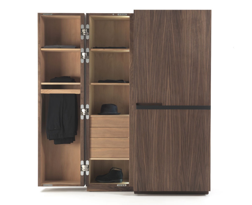 The Nuit wardrobe from the Italian manufacturer Riva 1920. The Cabinet consists of closed sections, shelves and drawers. Frame and shelves made from wood. The wardrobe is manufactured in contemporary style.