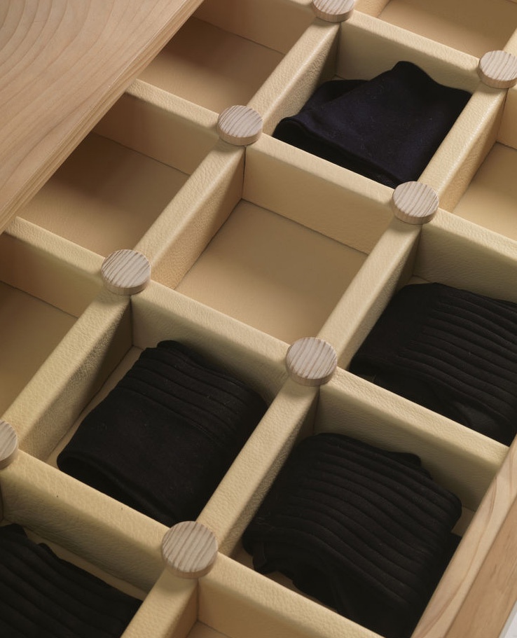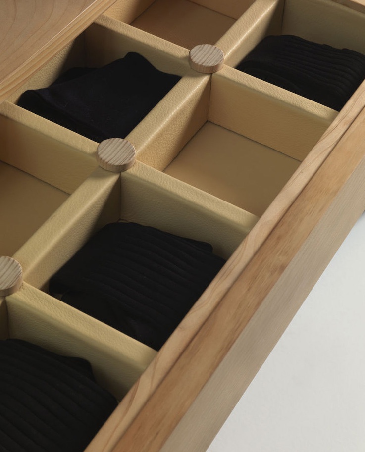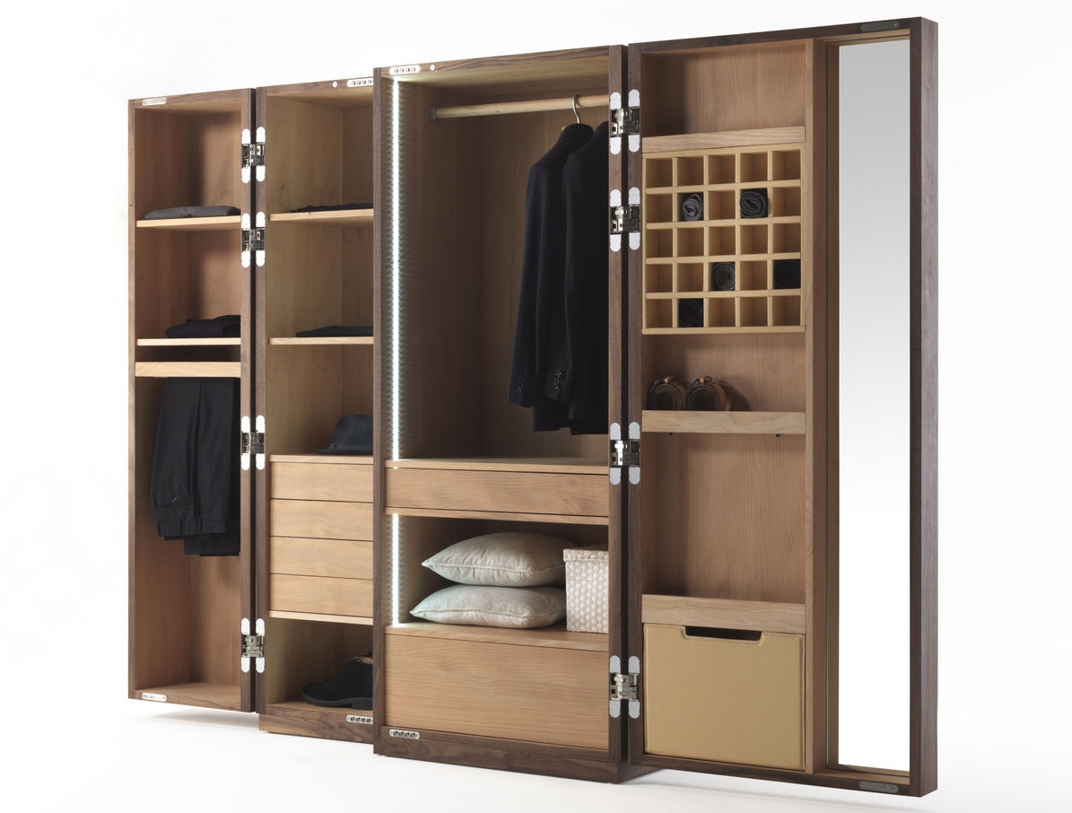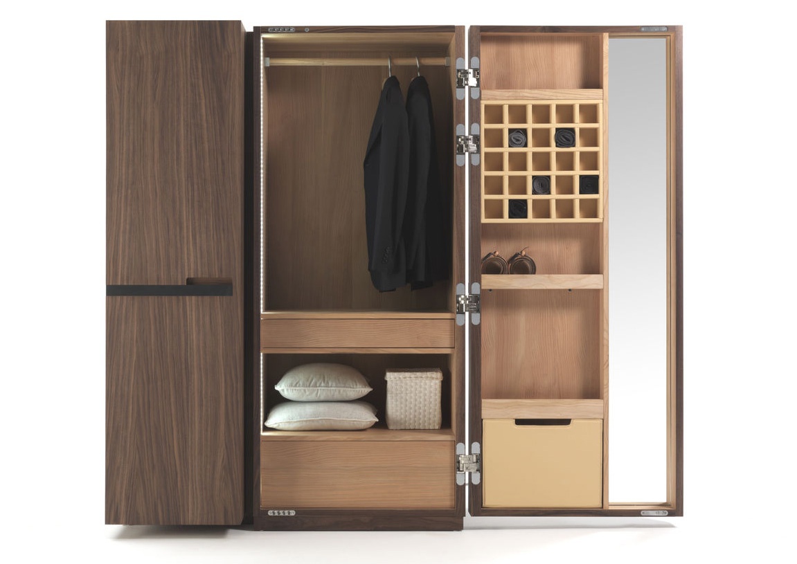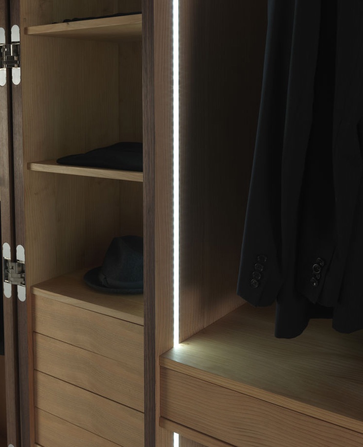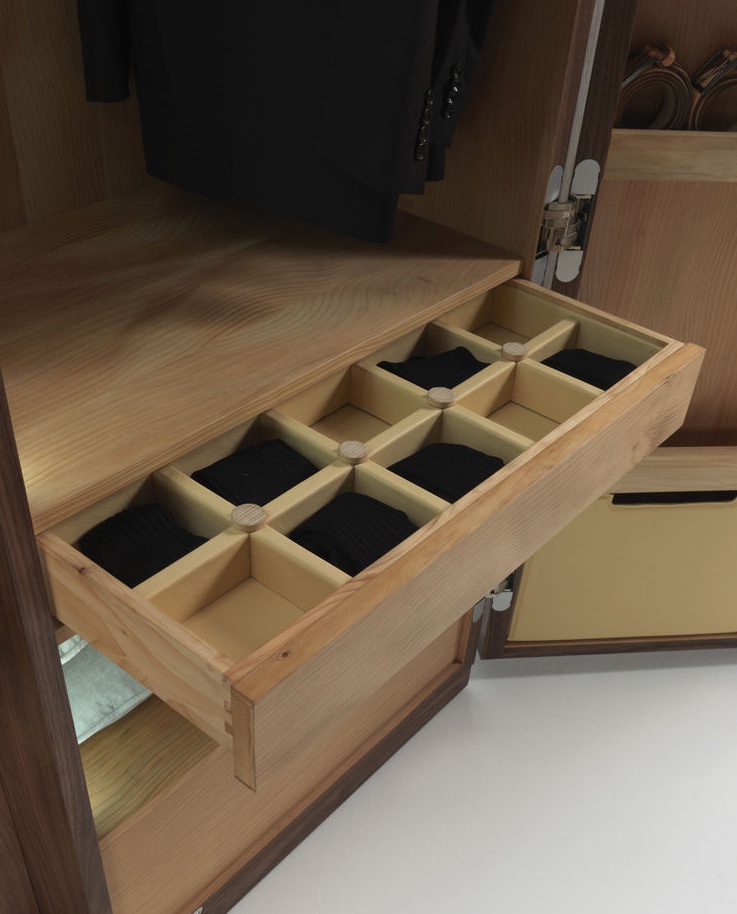 The Nuit wardrobe from the Italian manufacturer Riva 1920. The Cabinet consists of closed sections, shelves and drawers. Frame and shelves made from wood. The wardrobe is manufactured in contemporary style.